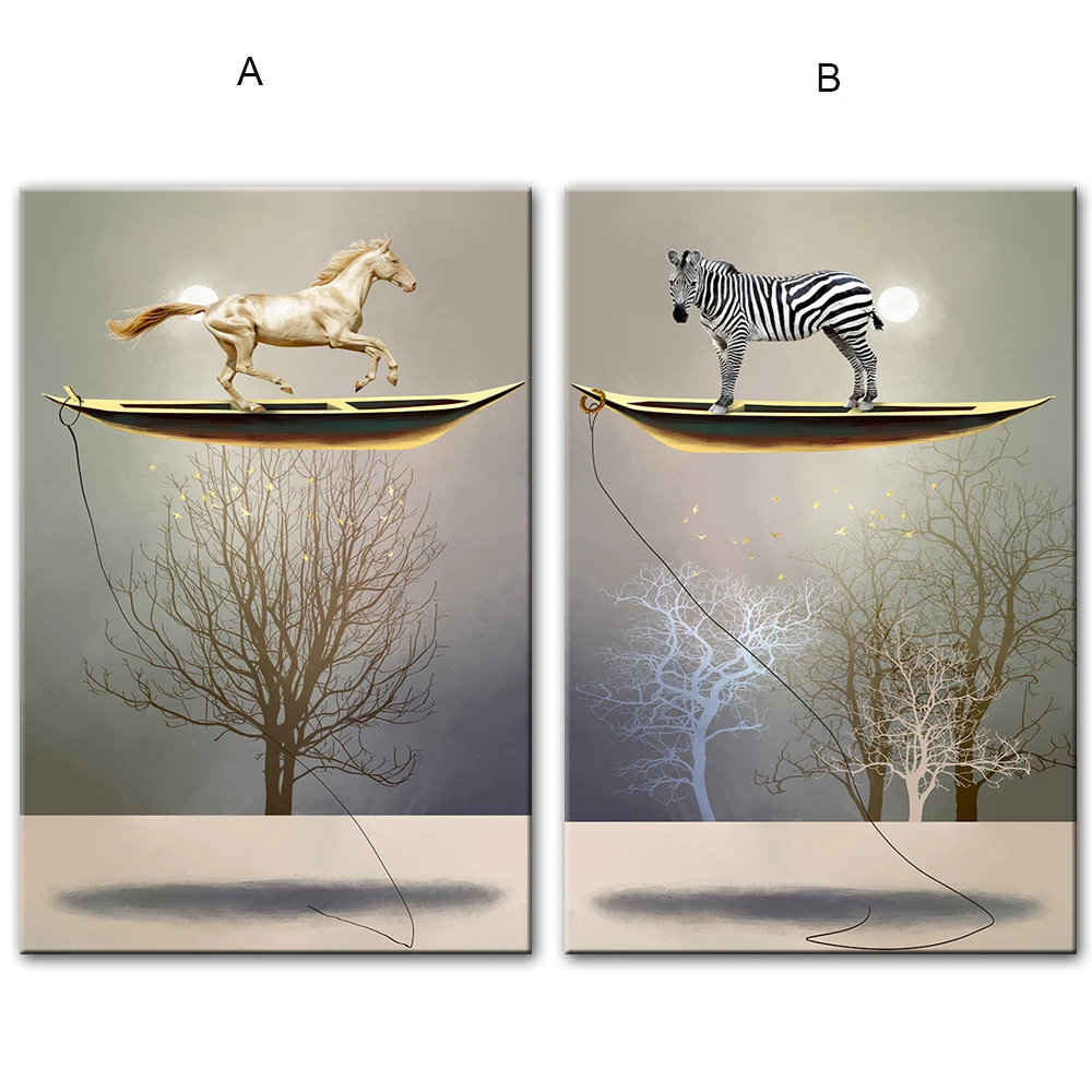 Лошадь стоя на Лодка на стену картины печать на холсте художественные принты абстрактные животные настенные художественные картины украшение дома