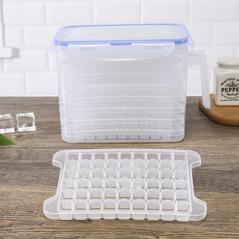 1 Set 8-layer Homemade Frozen Ice Cube Mold Refrigerator Ice Box with Lid Home Ice Box Plastic Quick-Frozen Ice Cube Tray