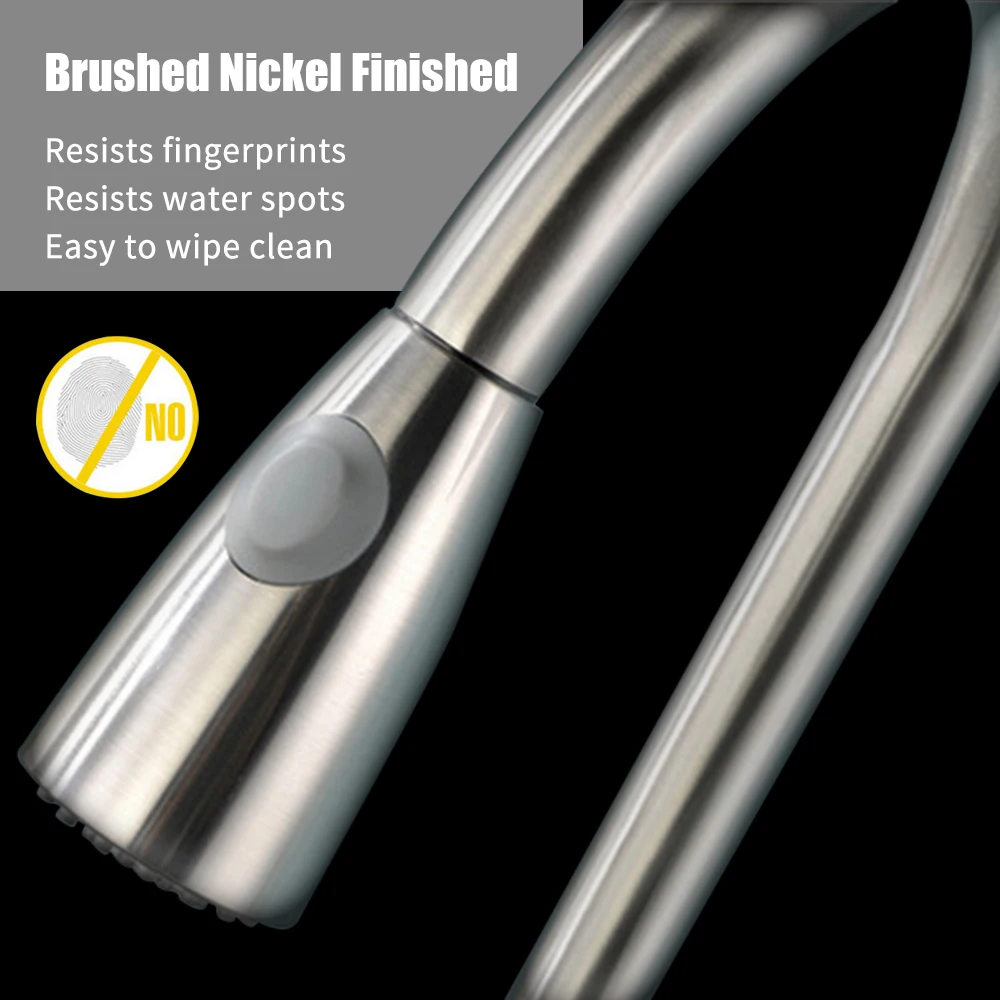 [12 дюймов выдвижной шланг]Смесители для кухонной раковины с удлиненным 12 дюймовым вытягивающимся шлангом позволяют легко добраться до всех зон вашей раковины.