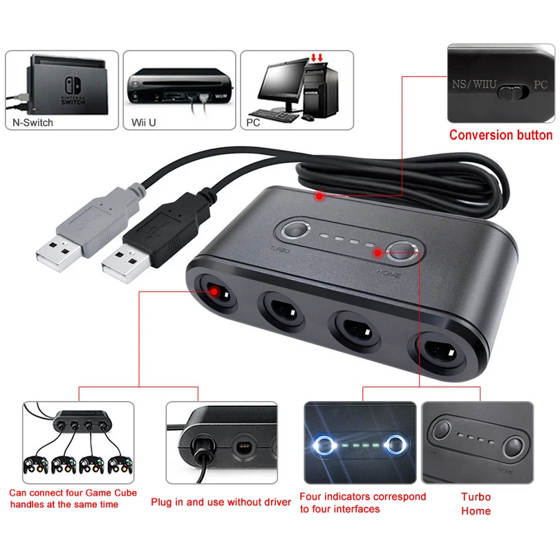 Адаптер контроллера forGameCube позволяет подключать до четырех контроллеров forGameCube (или беспроводных контроллеров forGameCube) к системе forWiiU и USB ПК.