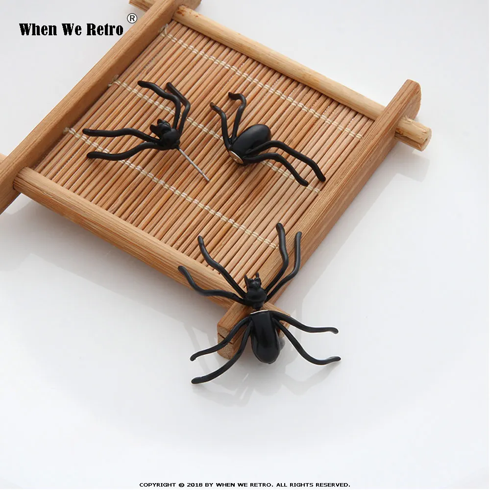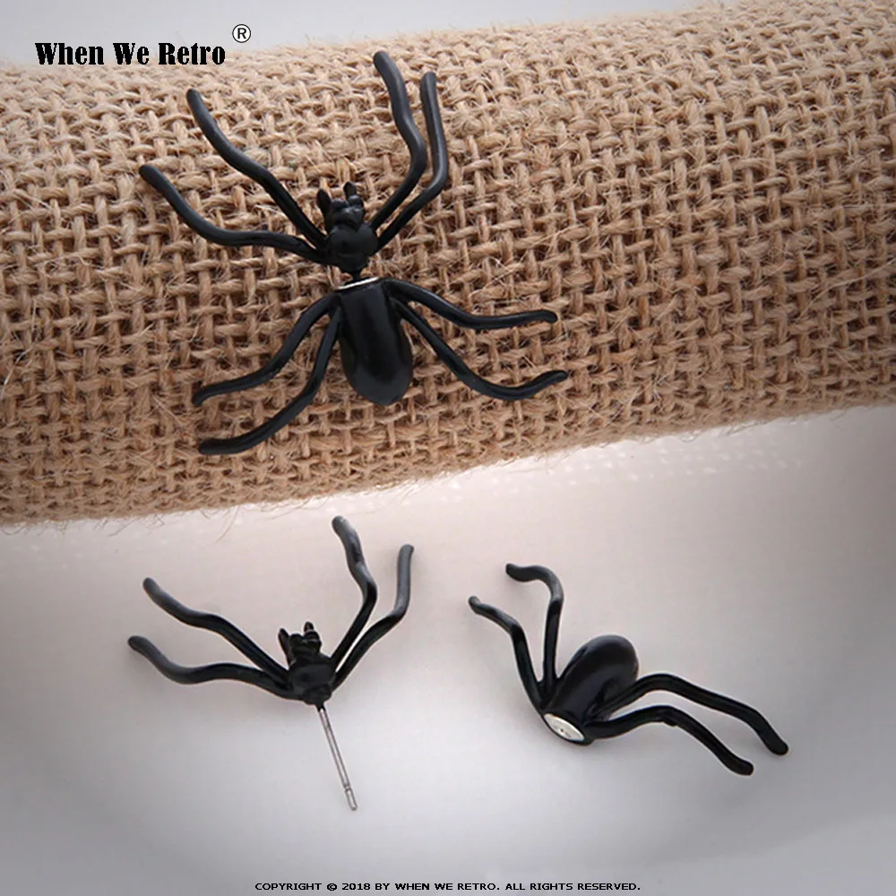 Когда мы Ретро Хэллоуин украшения 1 шт. жуткий черный паук QY0498 серьги-гвоздики для халовин Вечерние