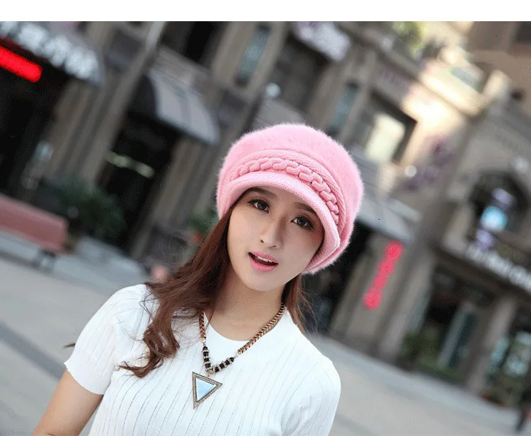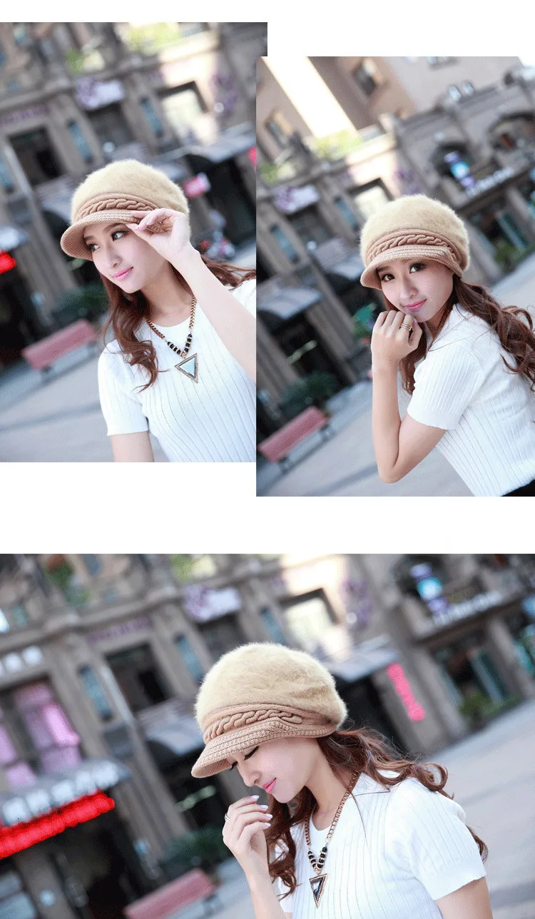 Шерстяной берет с кроликом, толстые плюшевые береты, шапка, Осень-зима, женская меховая вязаная шапка с мехом, Дамский модный берет