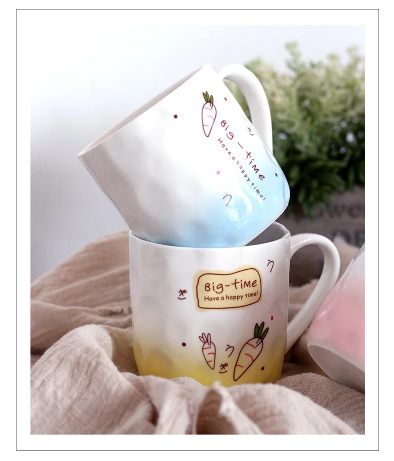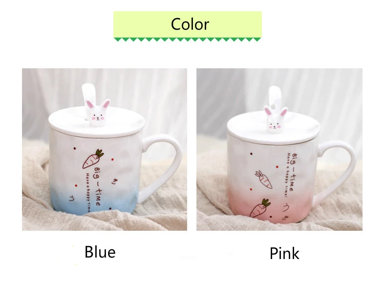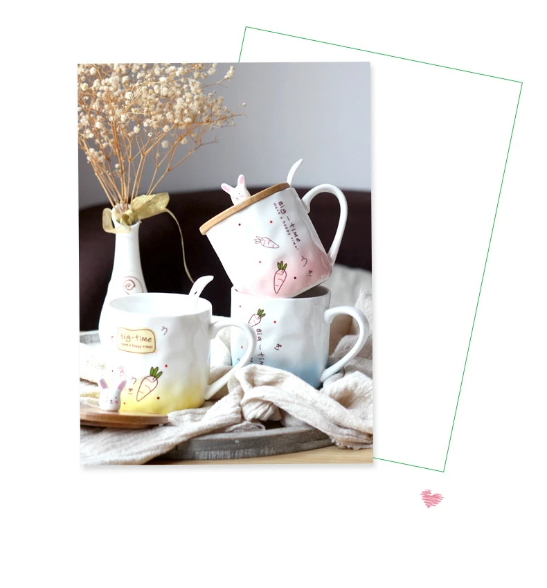Lovely Rabbit Originality Gradual Change Color Cartoon Ceramics Latte Milk Fruit Juice Tea Coffee Mugs Bring Cover Spoon