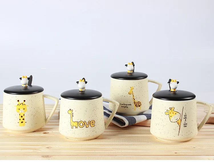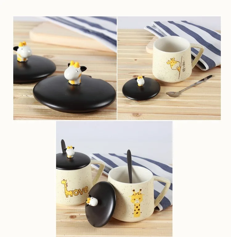 Оригинальная ручная роспись мультфильм Жираф керамический завтрак Овес Капучино молоко кофе кружки пара подарочные чашки