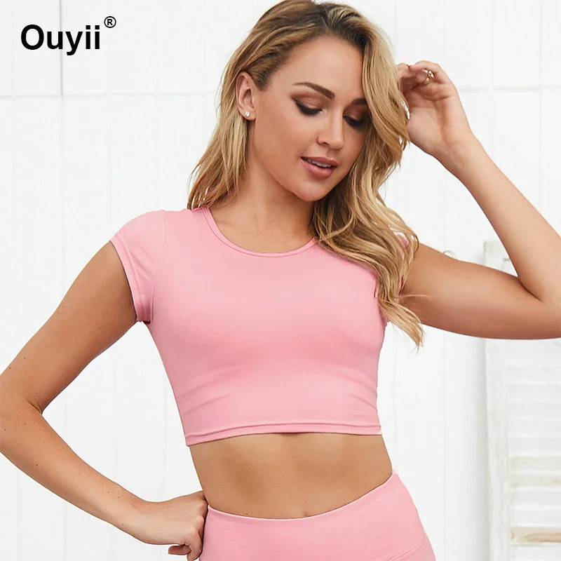 Женские шорты для йоги с коротким рукавом для тренажерного зала, фитнеса, тренировок, спорта, быстросохнущие дышащие женские футболки, обтягивающие Стрейчевые спортивные шорты для бега