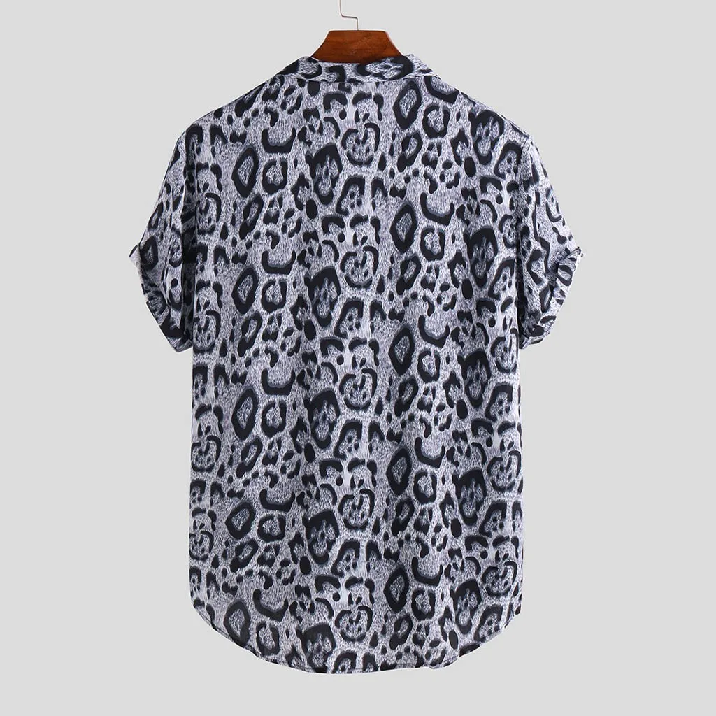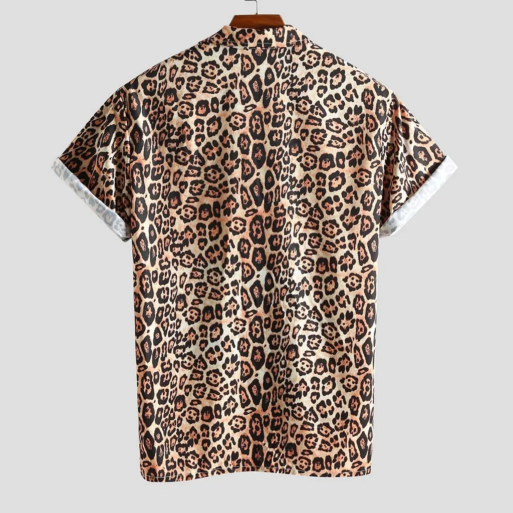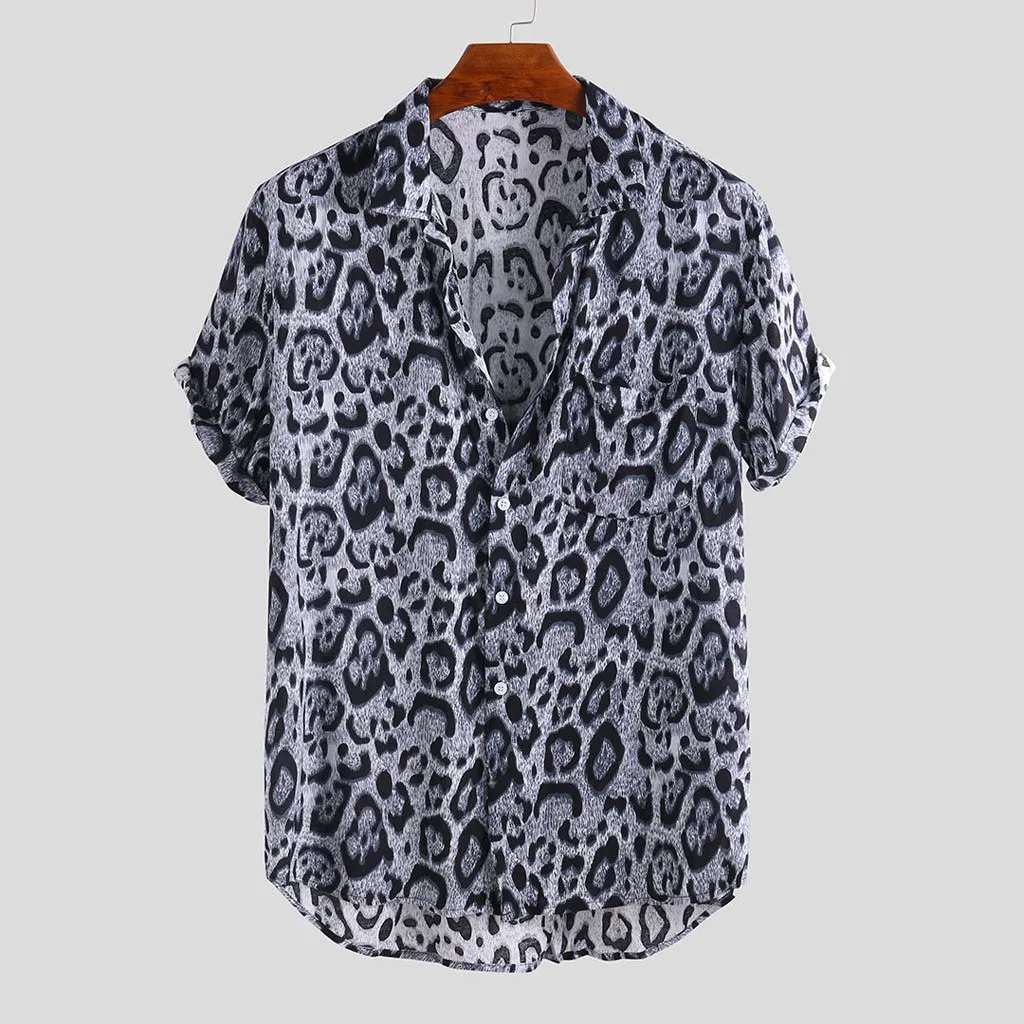 Хит, Мужская Летняя Повседневная Сексуальная леопардовая рубашка с коротким рукавом, Мужская Красивая рубашка с леопардовым принтом, рабочая рубашка, Camisa Hombre Leopardo