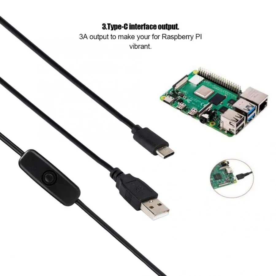 Для Raspberry Pi 4 type-C адаптер зарядного устройства Соединительный кабель с переключателем