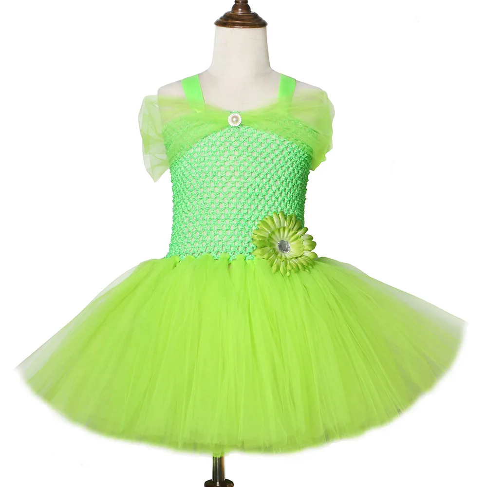Зеленое сказочное платье-пачка для девочек; Зеленое фатиновое платье принцессы для дня рождения для девочек; Нарядный Детский костюм на Хэллоуин и Рождество