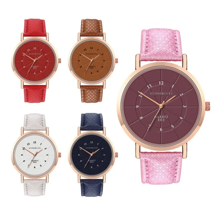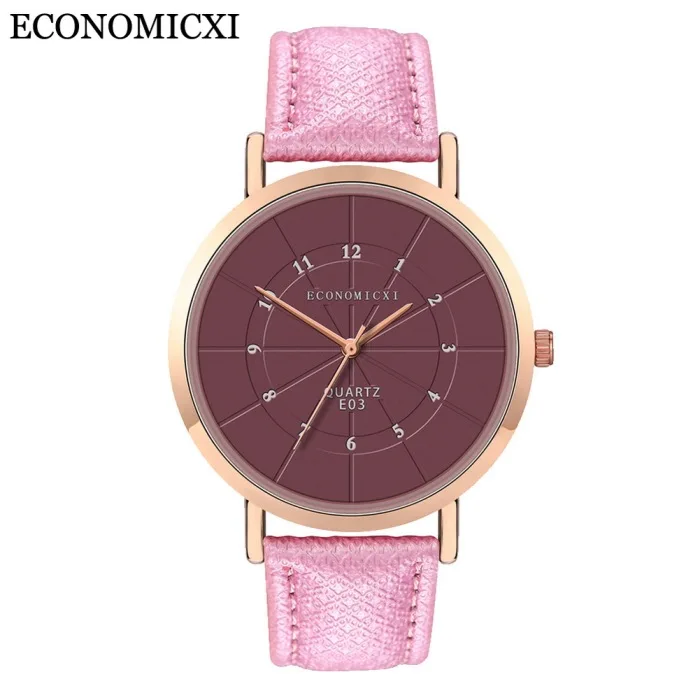 Популярные женские классические кварцевые часы с кожаным ремешком, простые круглые часы с циферблатом, подарки 19ING