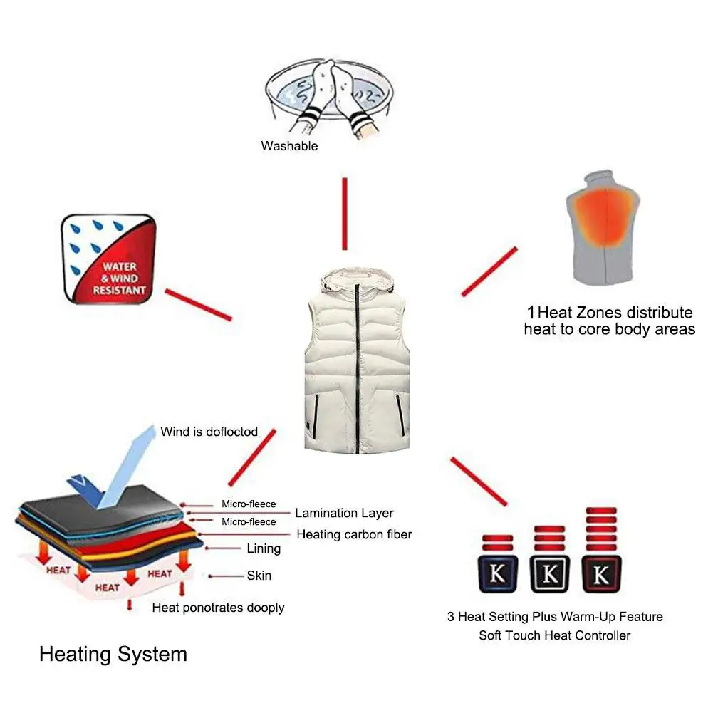 1. Обратите внимание: для лучшей посадки Измерьте тело в указанную точку в таблице размеров и сравните измеренное значение с соответствующим диапазоном размеров. Пожалуйста, внимательно проверьте таблицу размеров.1 * Нагревательный жилет или1 * нагревательные перчатки