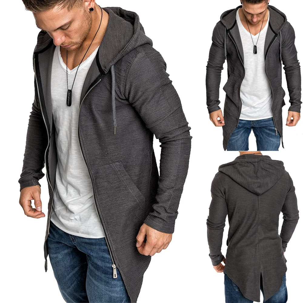 Мужская толстовка с капюшоном и длинным рукавом, спортивная куртка на молнии, верхняя одежда