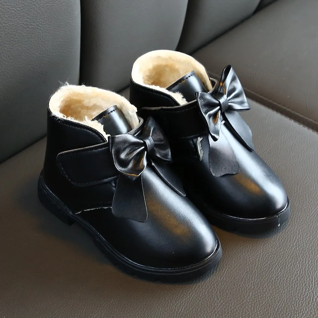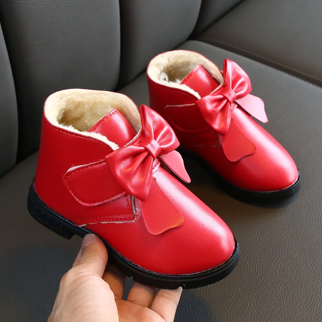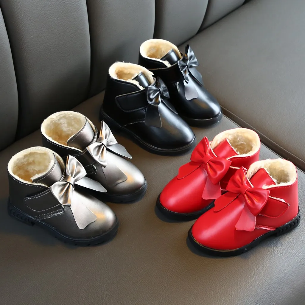 Зимняя детская одеждаТеплые спортивные зимние ботинки ботиночки с бантом для маленьких девочек; повседневная обувь
