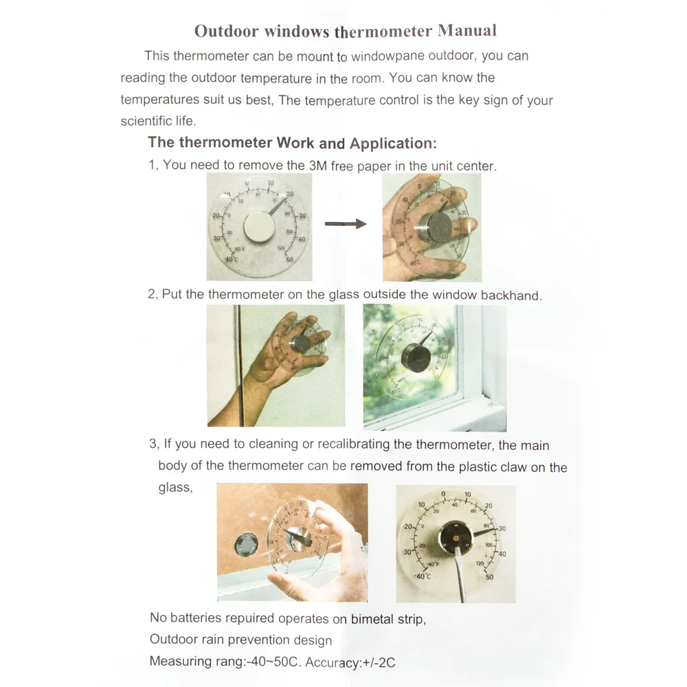 Прозрачный измеритель температуры может быть установлен на стекло на открытом воздухе, вы можете читать температуру на открытом воздухе в помещении. Вы можете четко знать температуру на улице дома и менять одежду в соответствии с данными, избегая замерзнуть.