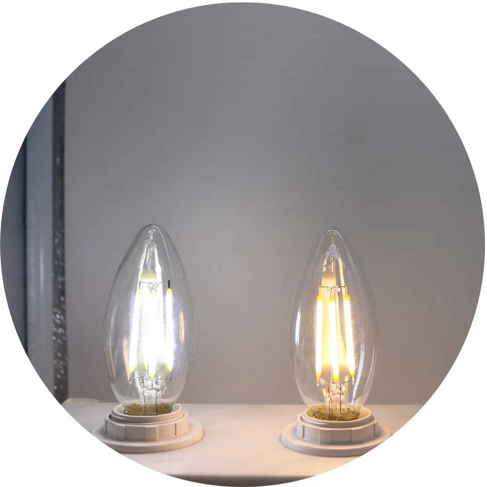 Материал: Стекло Тип основания: E14 Мощность: 2 Вт/4 Вт/6 Вт Люмен: 180лм (2 Вт), 360лм (4 Вт), 450лм (6 Вт) Напряжение: AC220V Цвет света: теплый белый/холодный белый Цветовая температура: теплый белый (2700 K-2900 K), холодный белый (6000 K-6200 K) Угол пучка: 360 °