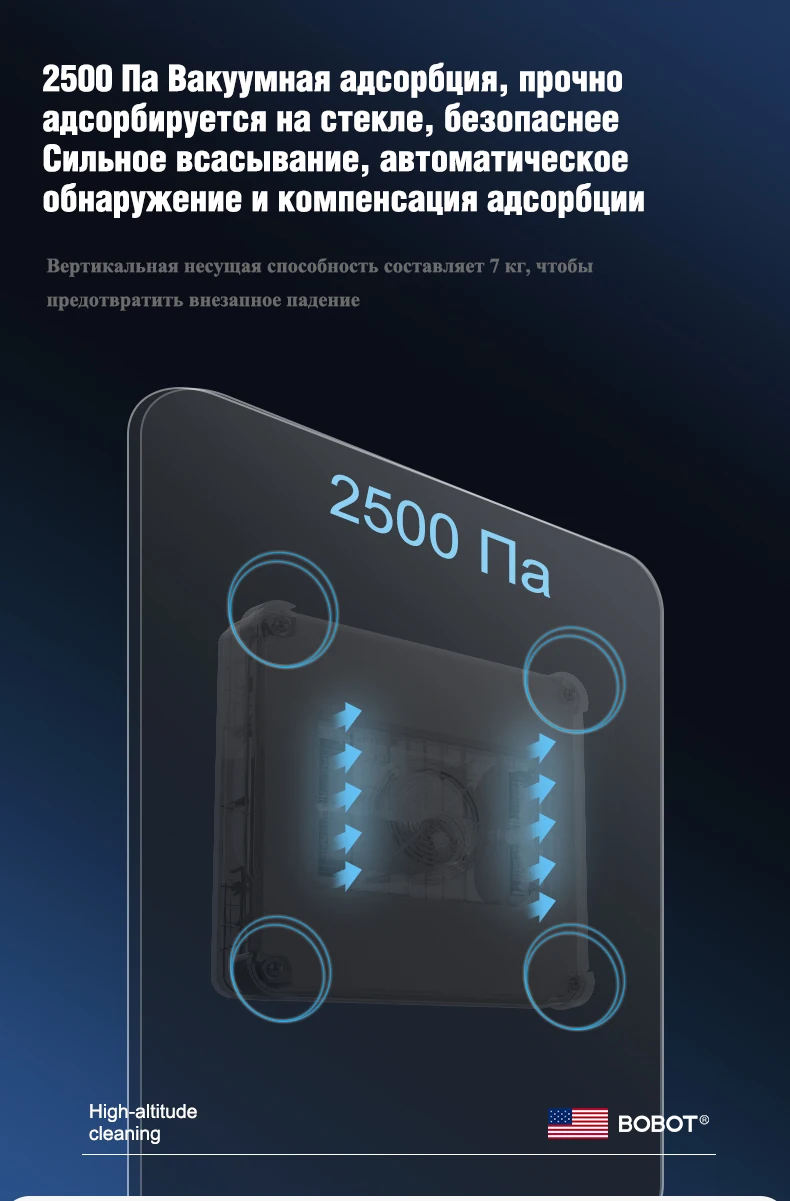 2500 ПА вакуумный мотор всасывания, прочно адсорбируется на стекле, более безопасный Сильный всасывания автоматическое обнаружение и компенсация адсорбции