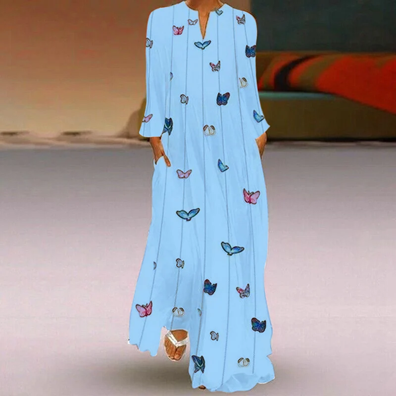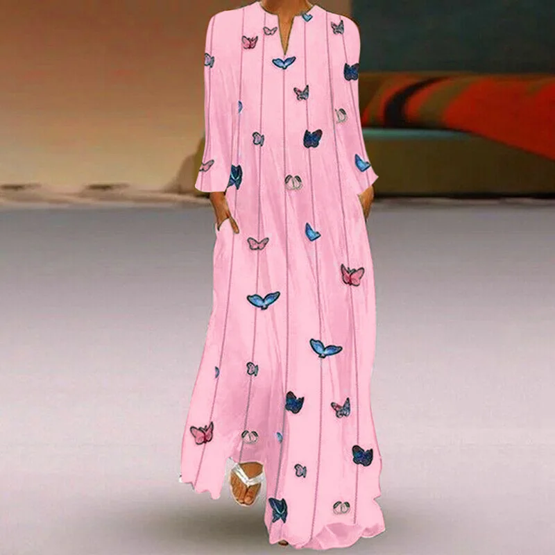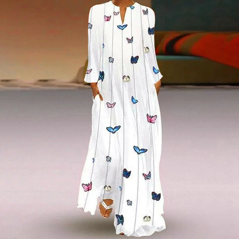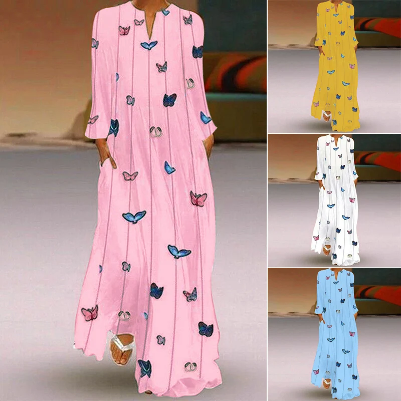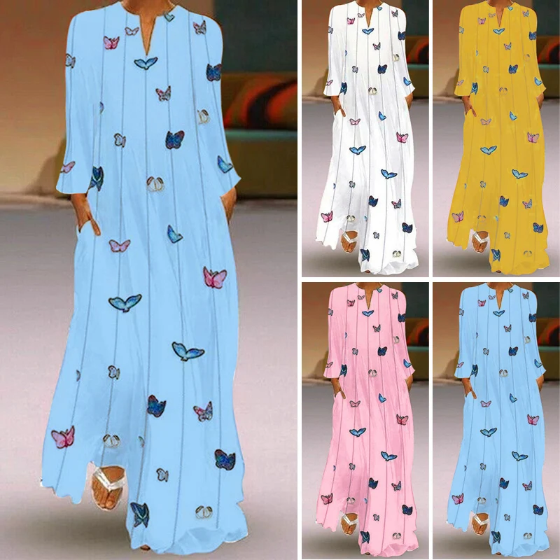 * Описание товара: женское Макси платье Летнее Бохо С Цветочным v-образным вырезом с длинным рукавом и карманом свободного покроя