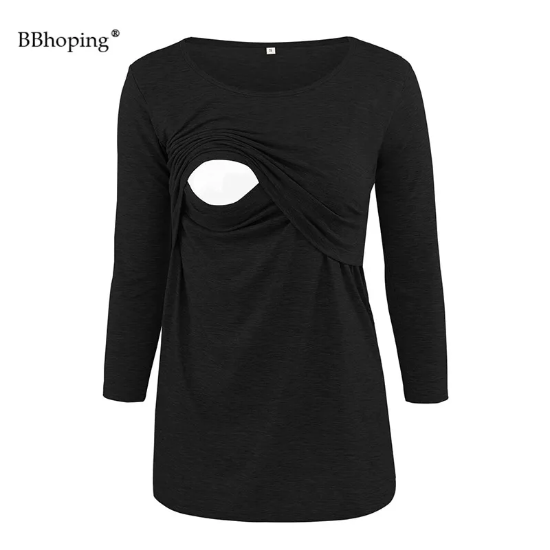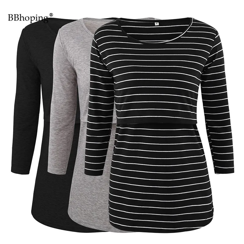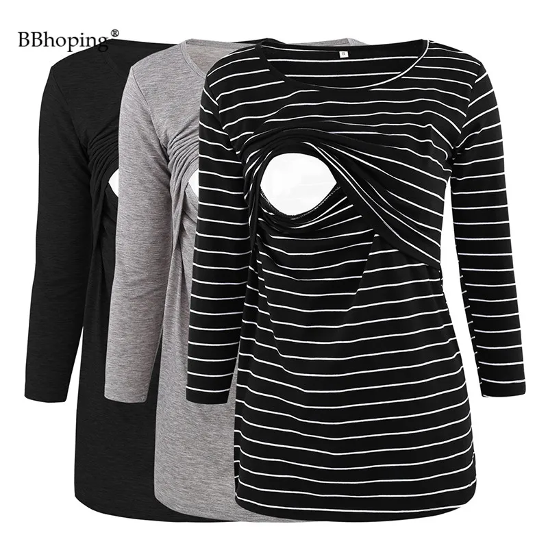 Удобная футболка для кормящих, с круглым вырезом, в полоску, легко одевается с джинсами для беременных или леггинсами для беспошлинного стиля.