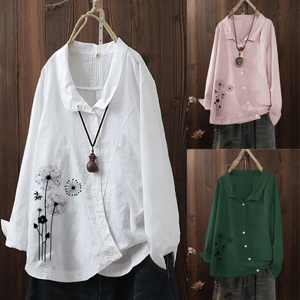 Женская Повседневная Цветочная печать v-образным вырезом с длинным рукавом блуза рубашка Свободный Топ