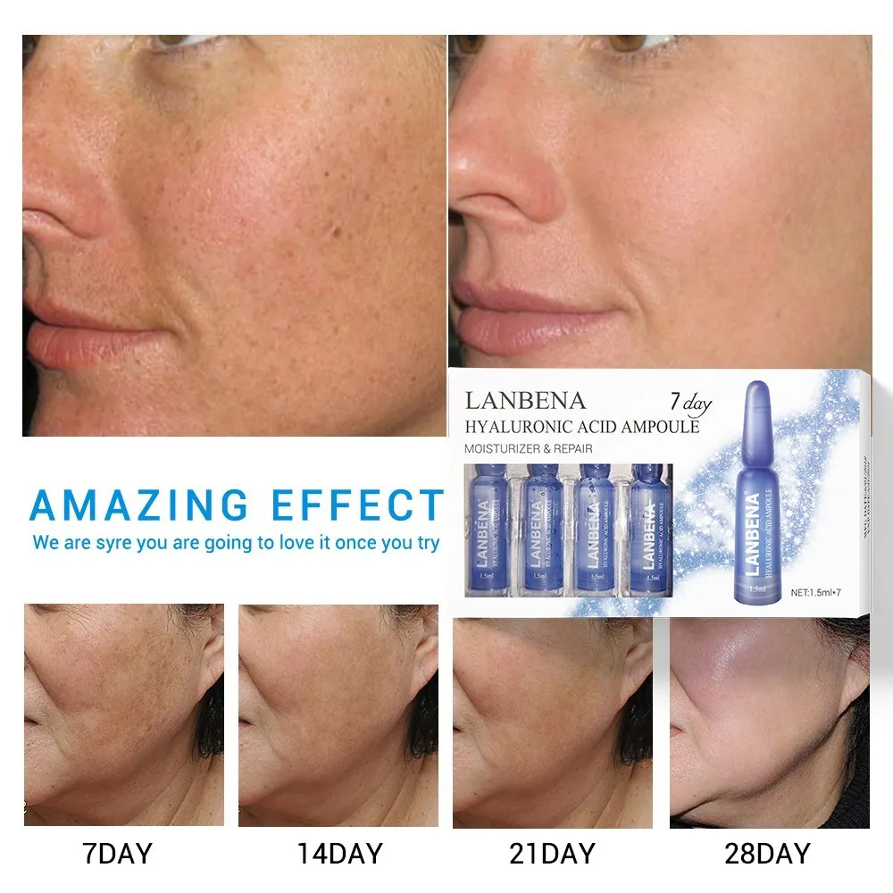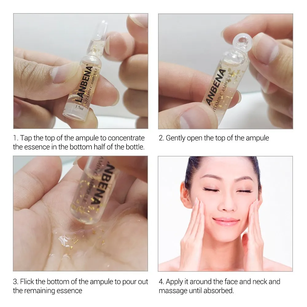 Бренд: LANBENA Стиль: 24K-Gold, Q10, витамин C, гиалуроновая кислота, керамид (опционально) Содержание нетто: 1,5 мл/7 шт Вес посылка: 30 г/1,06 унций Размер посылка: 110*76*15 мм/4,33*2,99 * 0.59in