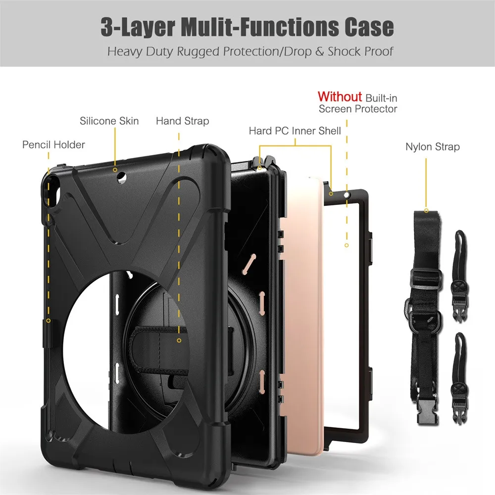 Для iPad Air 3 10,5 2019 Pro 10,5 ударопрочный чехол на лямках с поворотной подставкой с держателем для карандашей