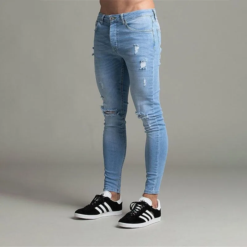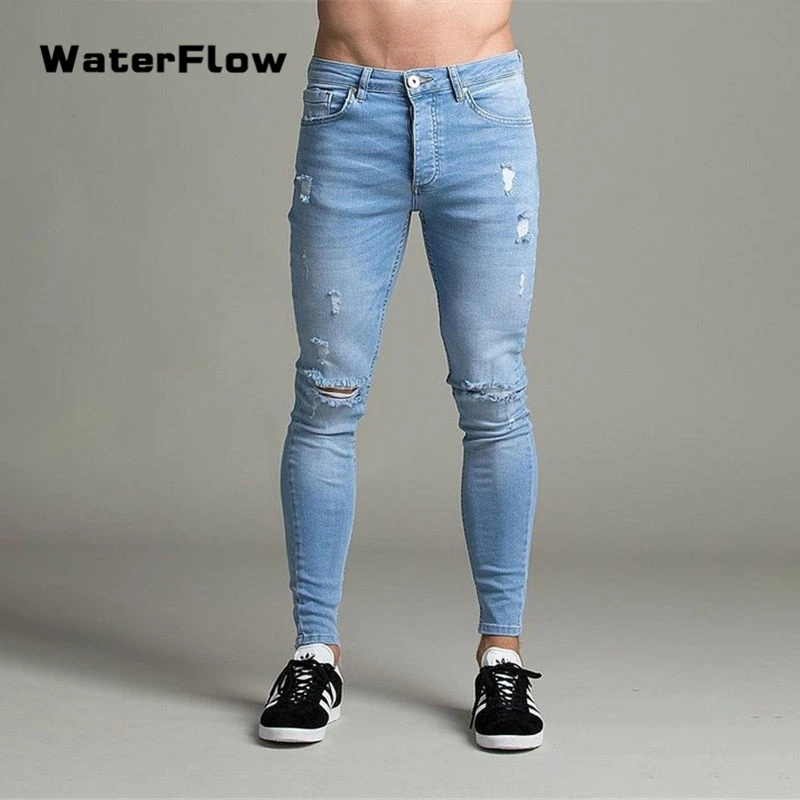 2019 новые мужские обтягивающие джинсы стретчевые джинсы Homme MoneRffi мужской Повседневное, Искусственно состаренная, с дырками, застежка-молния Винтаж брюки-карандаш черные джинсовые брюки