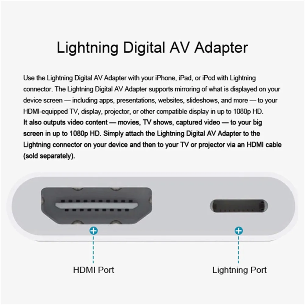 Lightning-HDMI Lightning, дисплей экрана устройства (включая приложение, презентацию, веб-сайт, слайды и т. Д.)