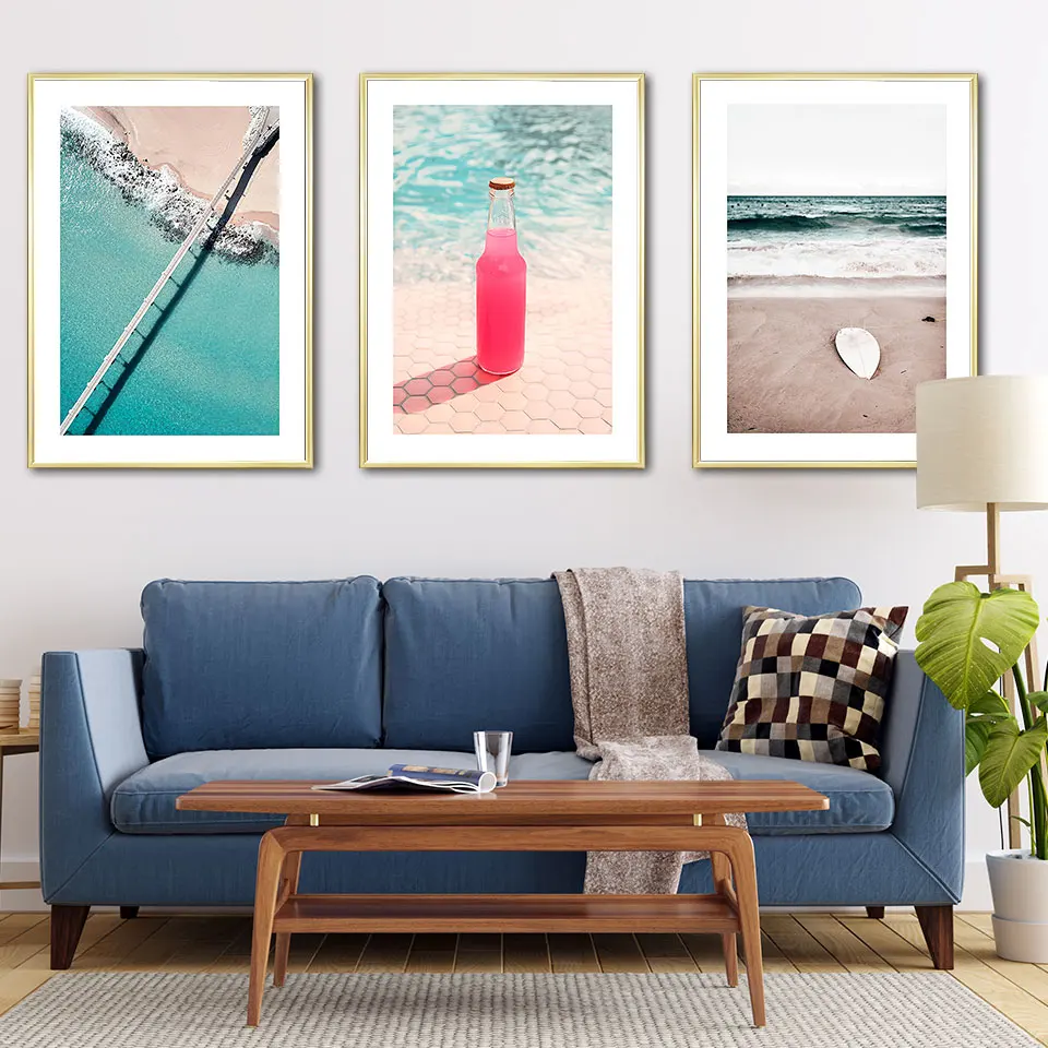 Праздничный постер для песчаного пляжа, скандинавский коктейль, холст, живопись, доска для серфинга, настенные художественные фотографии для гостиной, современные декоративные принты на стене, Unframe