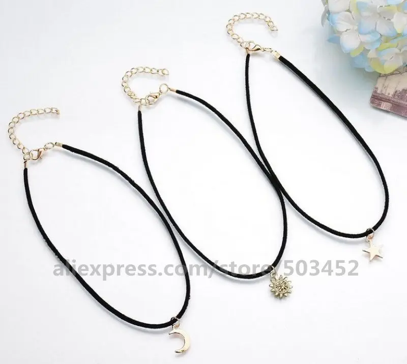 Тренд многослойное колье Femme Звезда Луна солнце кулон ювелирные изделия ожерелье s простой бархатный пояс сплав ketting ожерелье