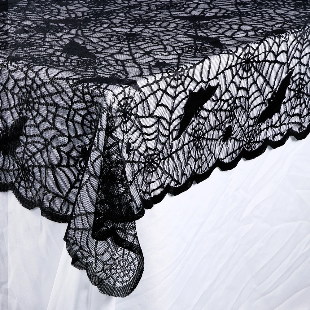 OurWarm 60*84 дюймов скатерть на тему Хэллоуина Черное кружево паук летучая мышь прямоугольная скатерть Хэллоуин украшение стола