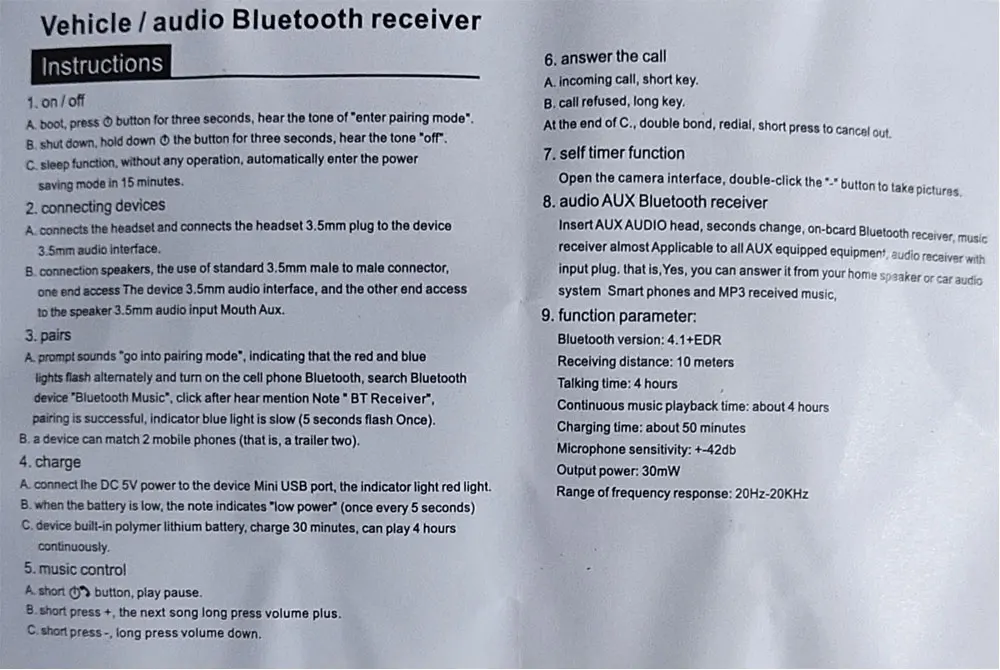 Вставная аудиоголовка AUX, смена секунд, Bluetooth-приемник on-bcard, музыкальный приемник, почти применимый ко всему оборудованию AUX, аудиоприемник с входным разъемом. То есть, да, вы можете ответить на него со своего домашнего динамика или автомобильной аудиосистемы смартфонов и mp3-принимаемых музыки,