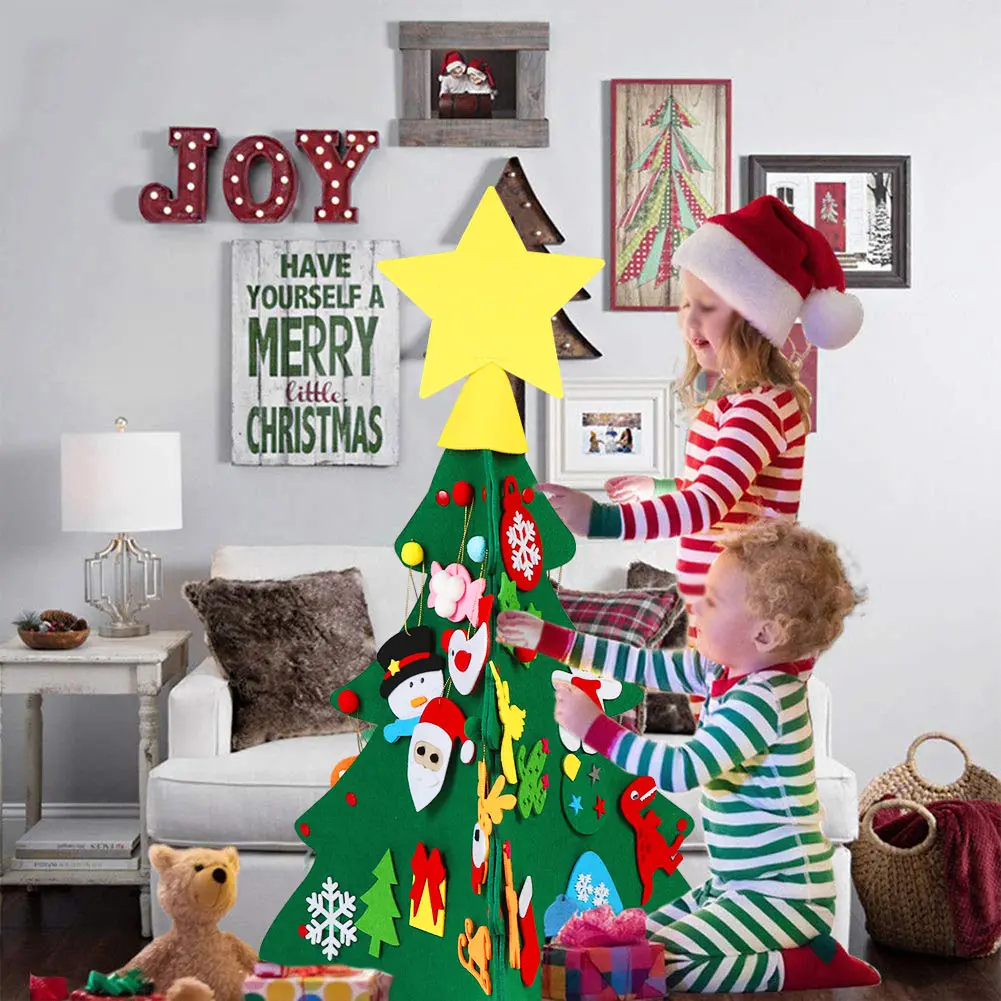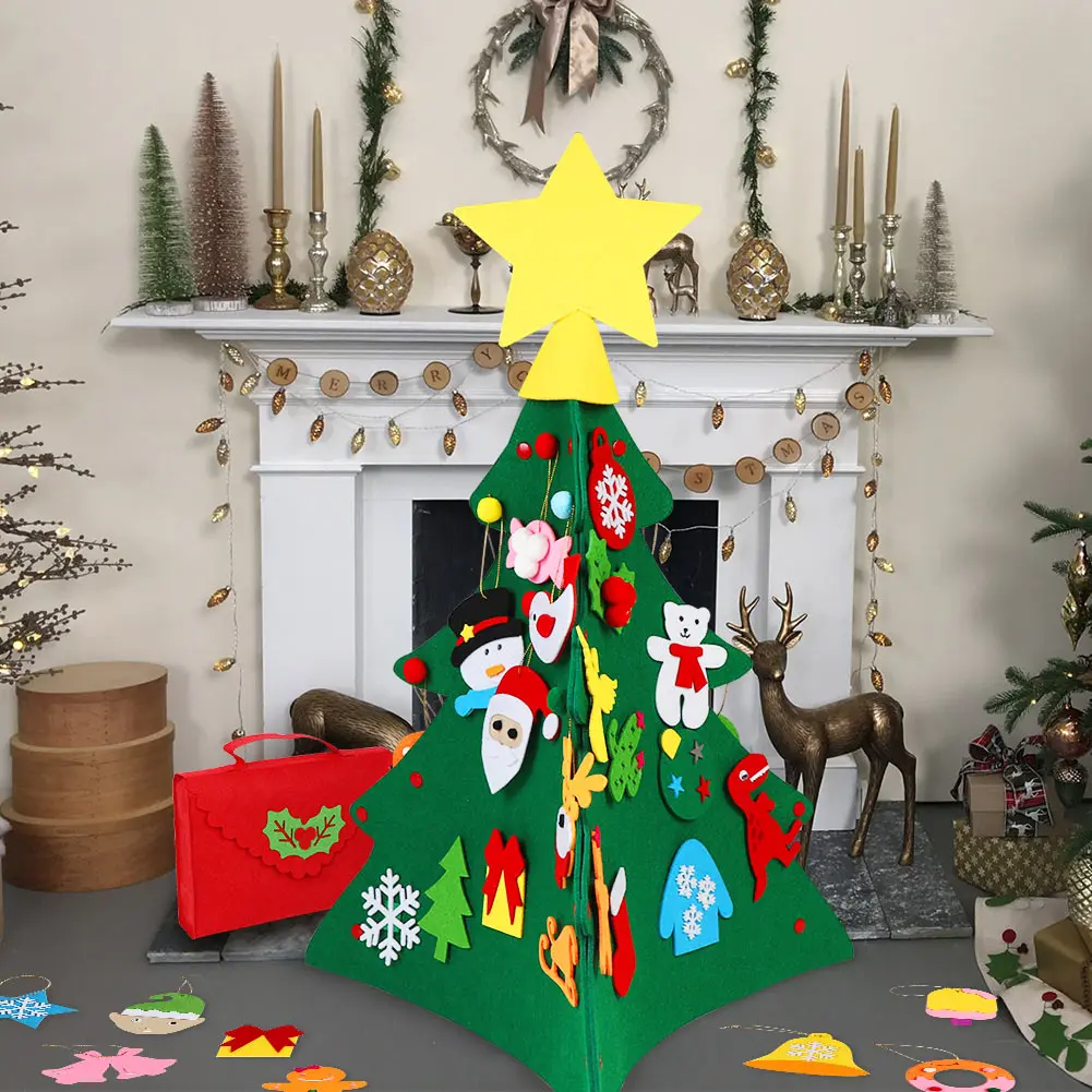 Войлочная Рождественская елка-предназначена для детей и малышей, а мягкая войлочная ткань позволяет детям трогать и играть. И Рождественские елки своими руками могут тренироваться у детей.
