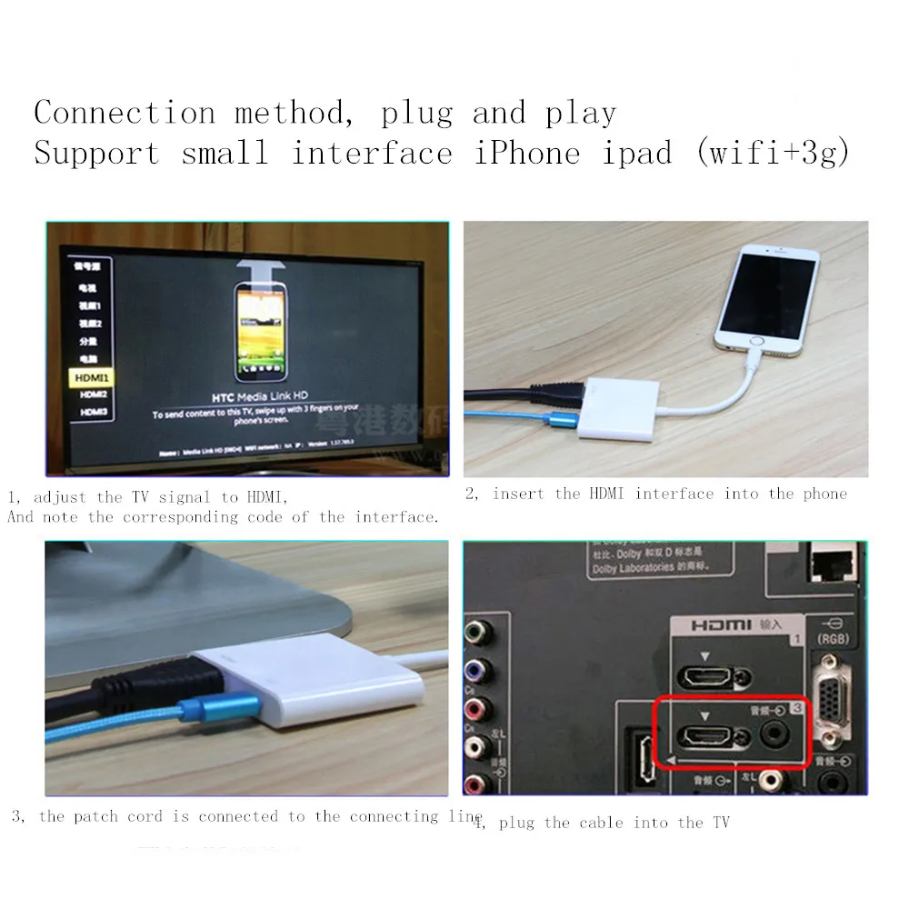 1, linghtning Преобразование HDMI кабель для подключения телефона
