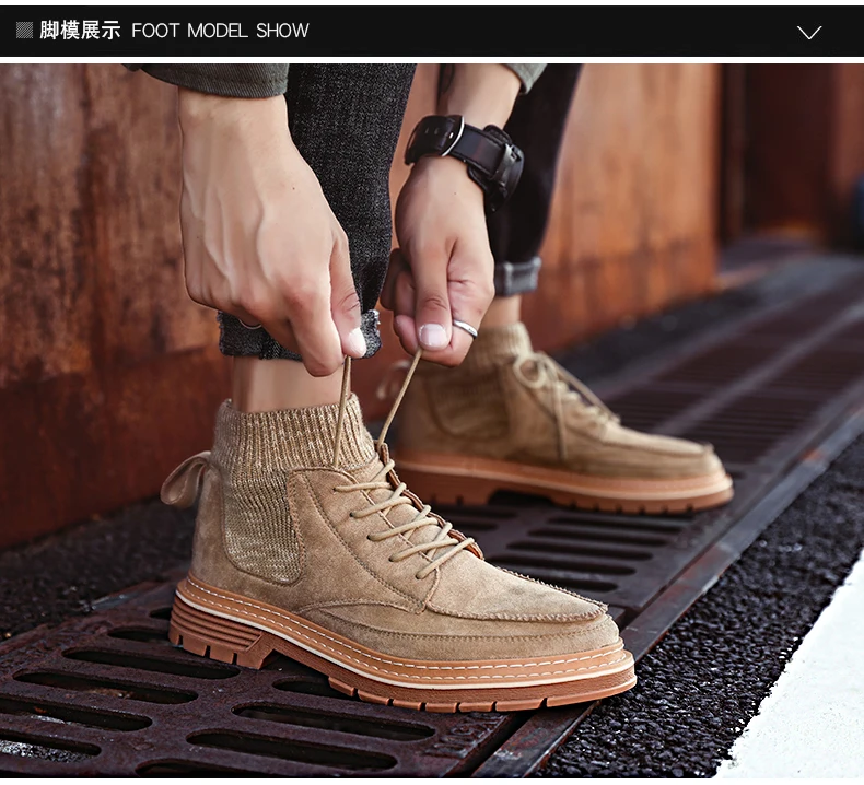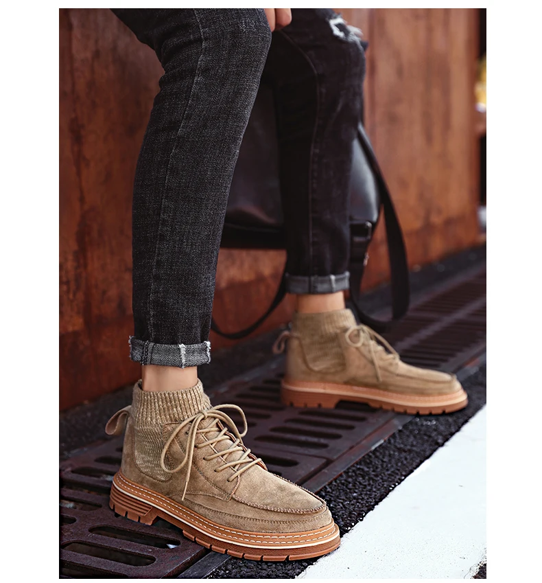 2019 Autumn New Men Boots High Quality Flannel Men Winter Boots High-top Ankle Boots Shoes Fashion Men Winter Shoes Work Boots