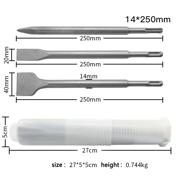 Посылка: (опционально) Option1: 1 * точечные долота 1 * плоское долото 1 * коленчатые долота Вариант 2: 2 * точечные долота 2 * плоское долото 2 * коленчатые долота Особенности: Подходит для SDS-plus электрического или беспроводного молотка Изготовлено с термообработкой для необходимой твердости и долговечности Для каменной кладки и демонтажа бетона Параметры: Материал: ультравысокими каблуками из высокопрочной стали Адаптированные машины: перфоратор SDS-plus Размер зубила: 98,4 ''(250 мм) Размер плоского зубила: 0,82X9,84 ''(20,8X250 мм) Размер зубила: 1,58X9,84 ''(40X250 мм)