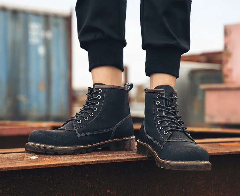 Мотоциклетные ботинки; зимние теплые мужские ботинки на меху; большие размеры; высококачественные ботильоны; botas hombre; Мужская обувь из натуральной кожи в деловом стиле