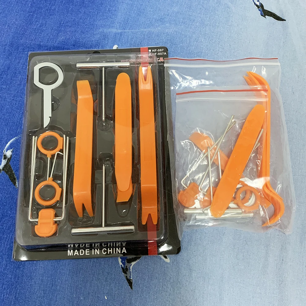 Профессиональный набор инструментов для быстрой и аккуратной разборки салонов автомобилей. Специализированный инструмент из прочной, но достаточно безопасной для декоративных элементов пластмассы. Полезный инструмент для безопасного снятия и установки клипс, авто акустики, наружной и внутренней отделки, дверных панелей и т.д.