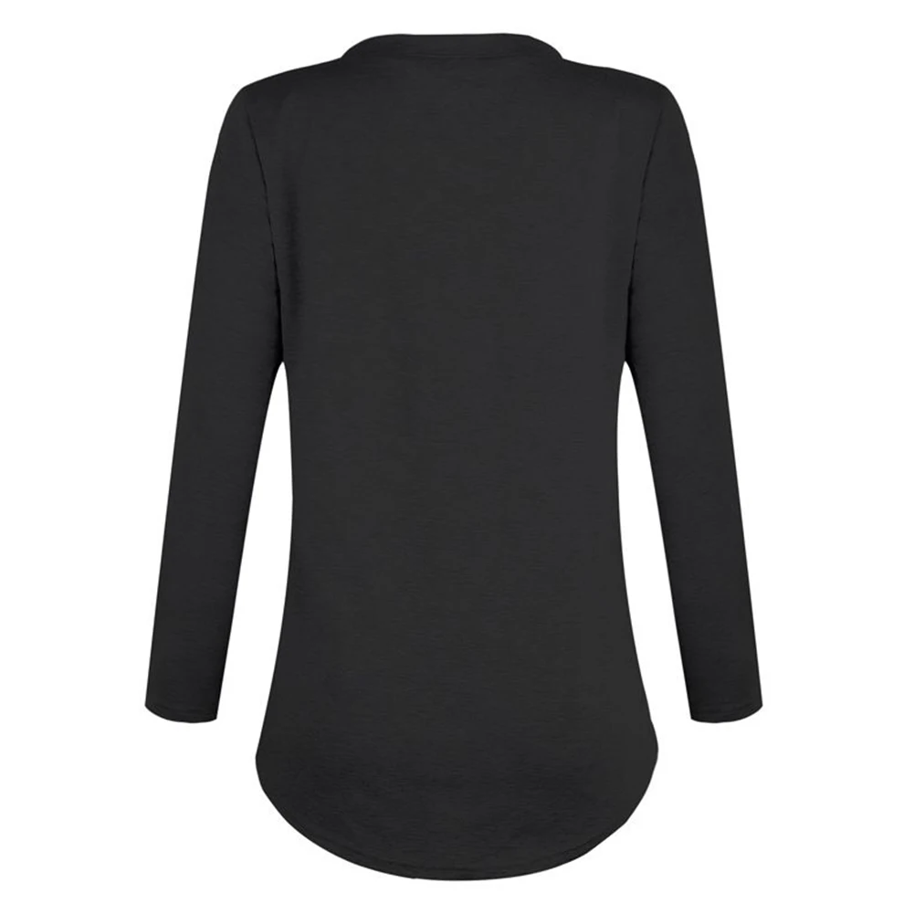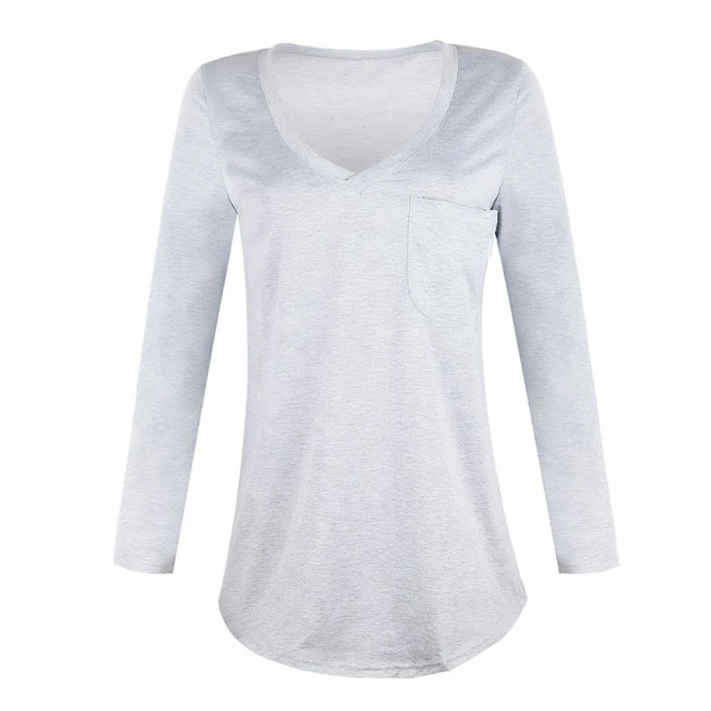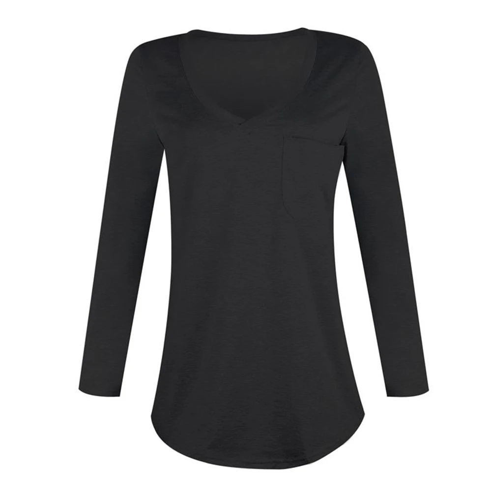 Сексуальный женский однотонный топ с глубоким v-образным вырезом и длинным рукавом, свободная туника с передним карманом
