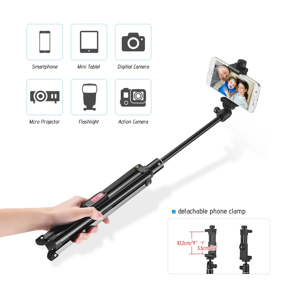 Мини-шаровая Головка поддерживает вращение по вертикали на 360 ° и наклонение до 90 °, поэтому вы можете свободно регулировать подходящий угол съемки.