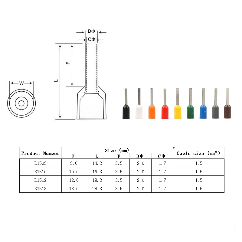Номер товара: E1508 E1510 E1512 E1518 Изоляционный Материал: ПВХ Свяжитесь с Материал: Медь Длина чистого Медь: 8/10/12/18 мм A.W.G: 16 Размер кабеля: 1,5 мм м² Цвет: красный/желтый/зеленый/белый/оранжевый/серый/синий/черный/коричневый