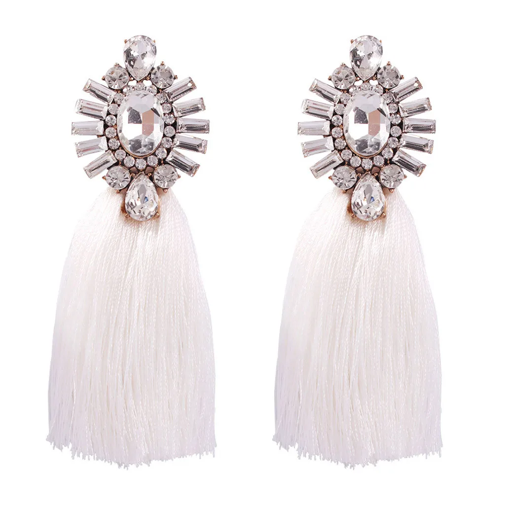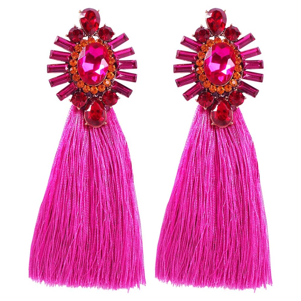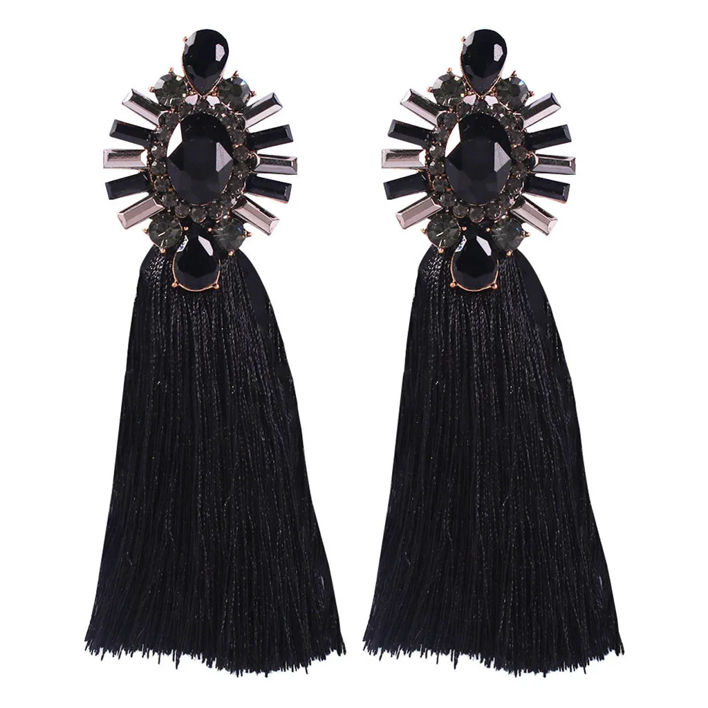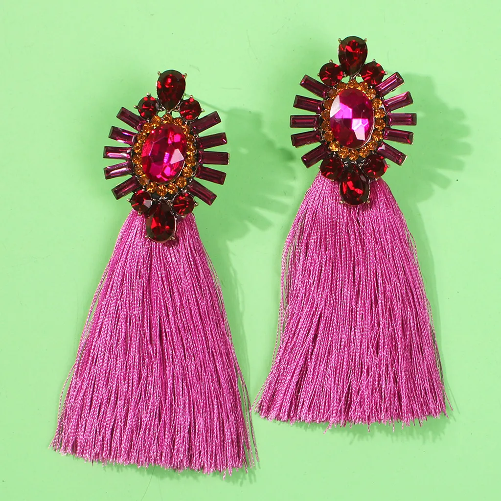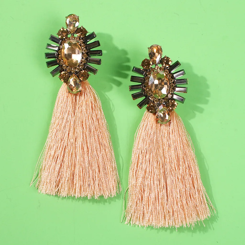Bohemian Rattan Handmade Tassel Geometric Round Earrings Ladies Jewelry