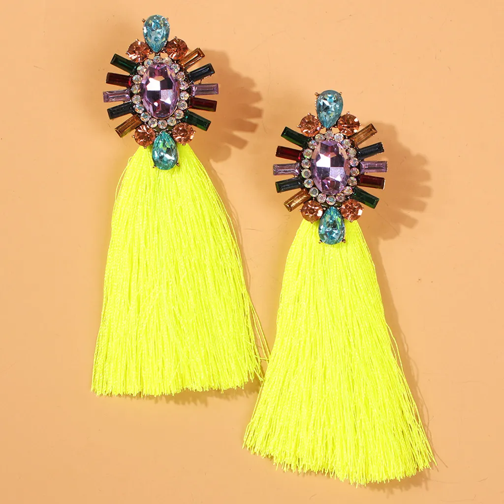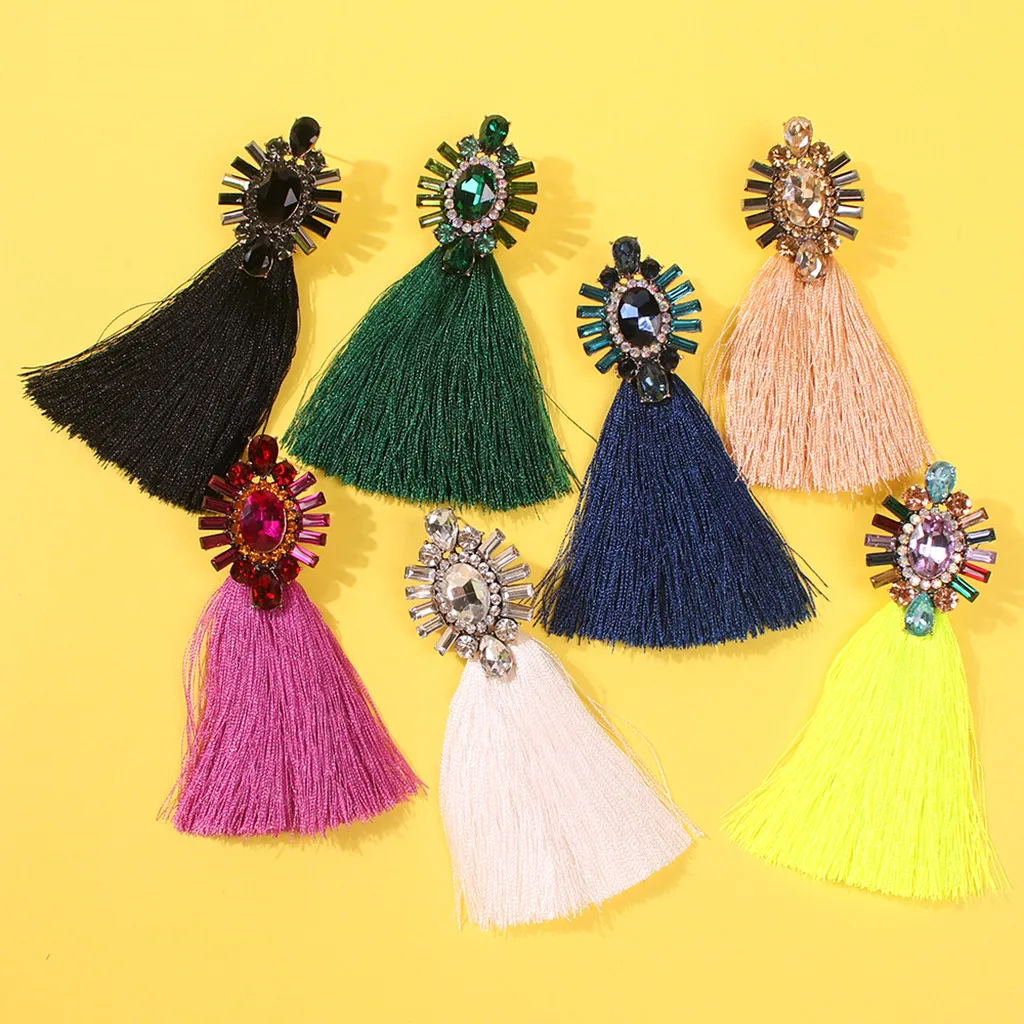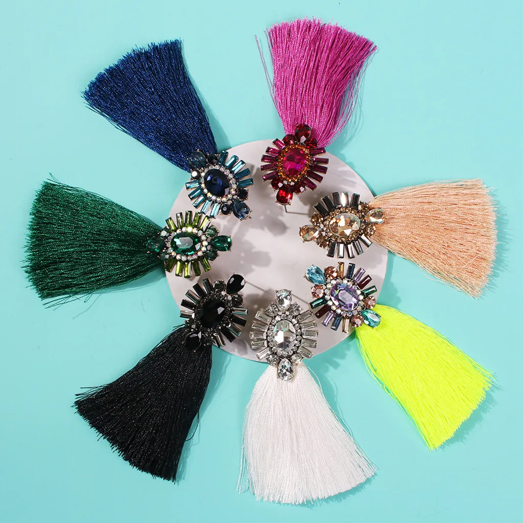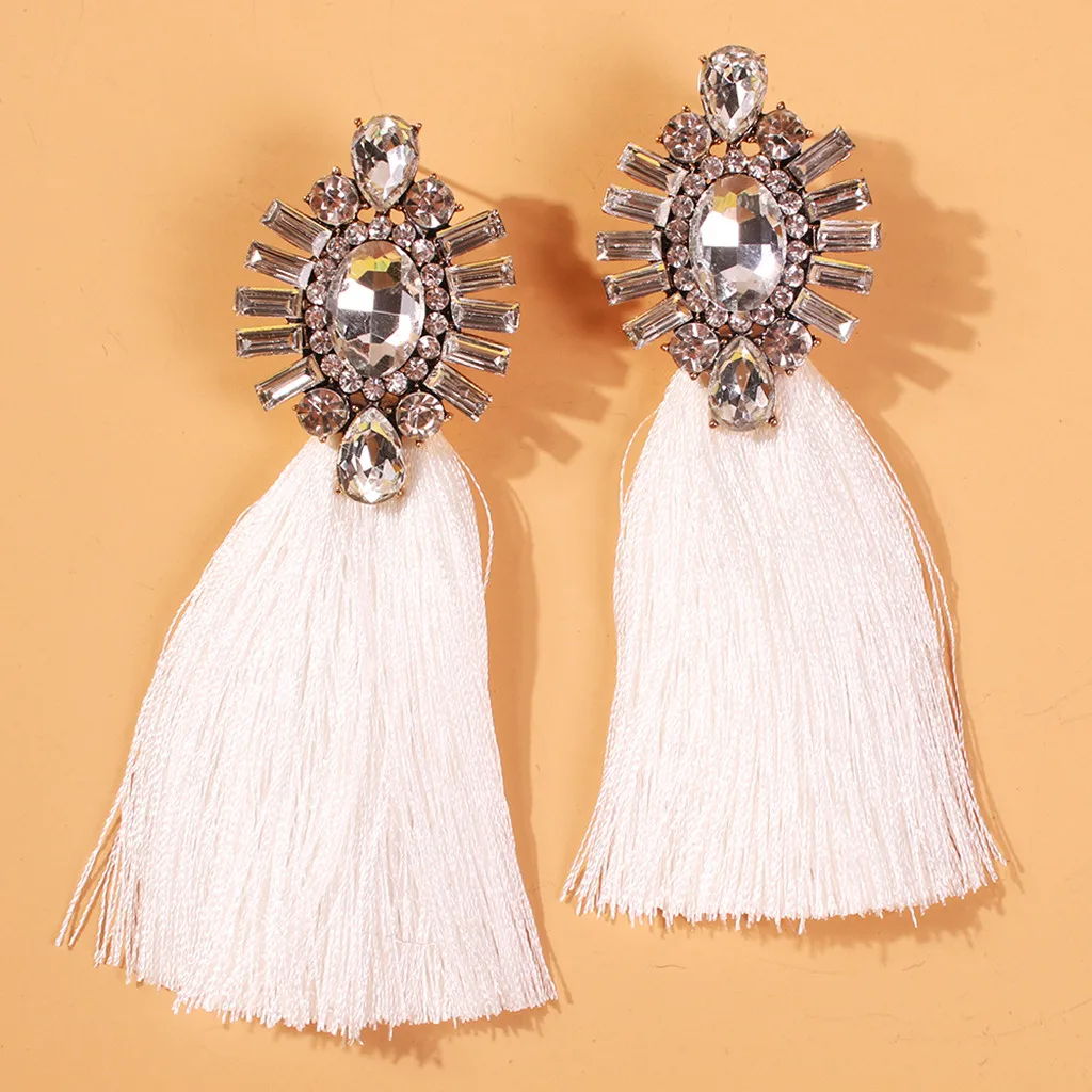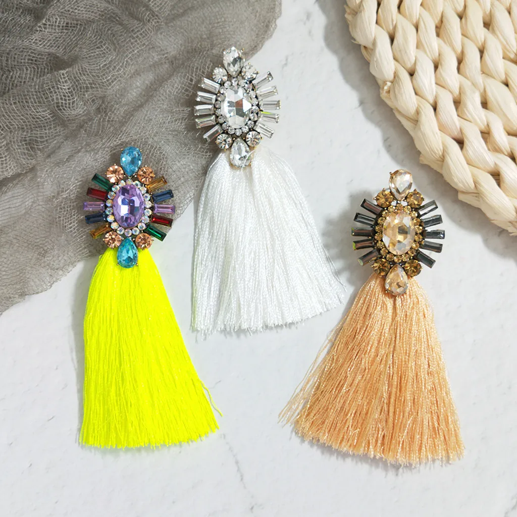 Bohemian Rattan Handmade Tassel Geometric Round Earrings Ladies Jewelry