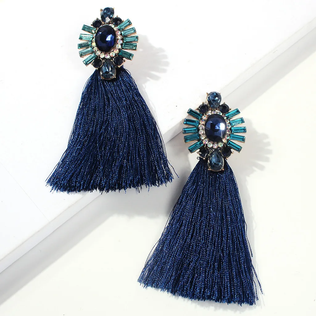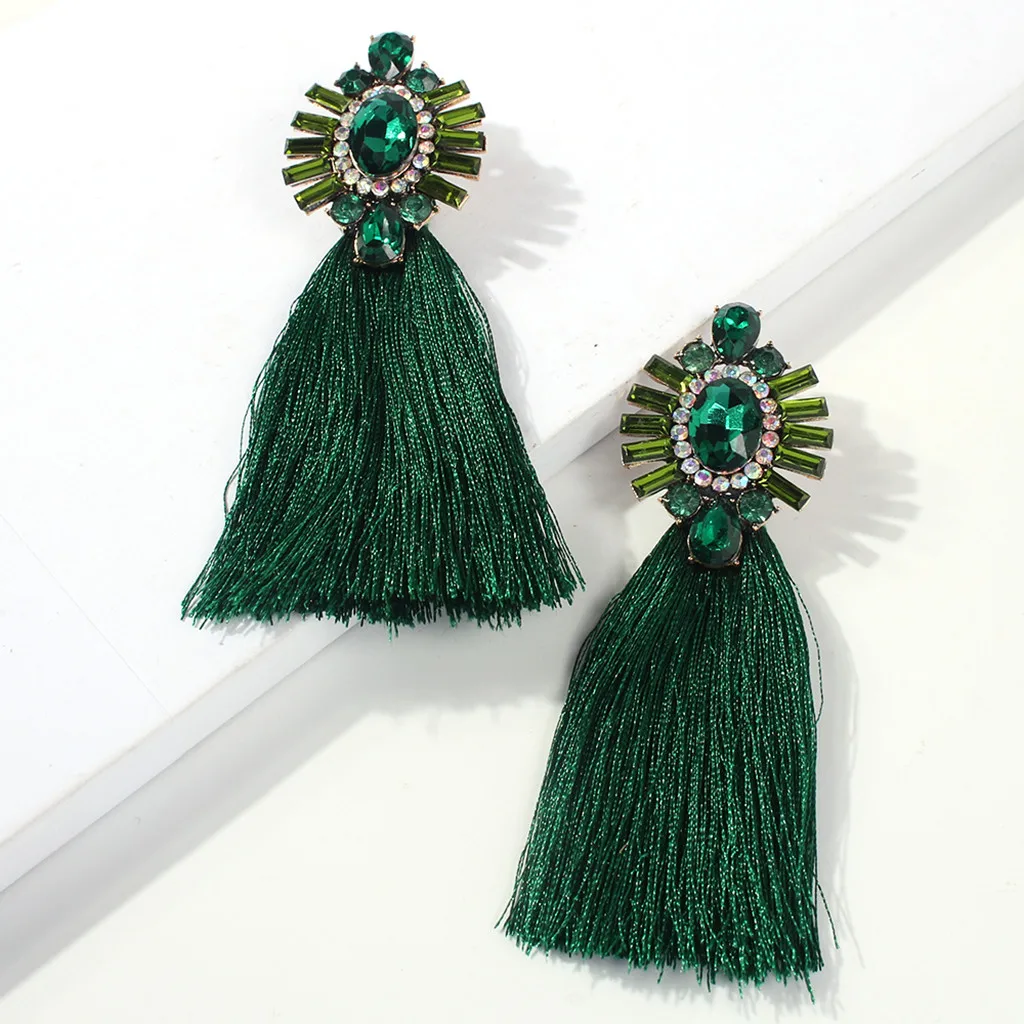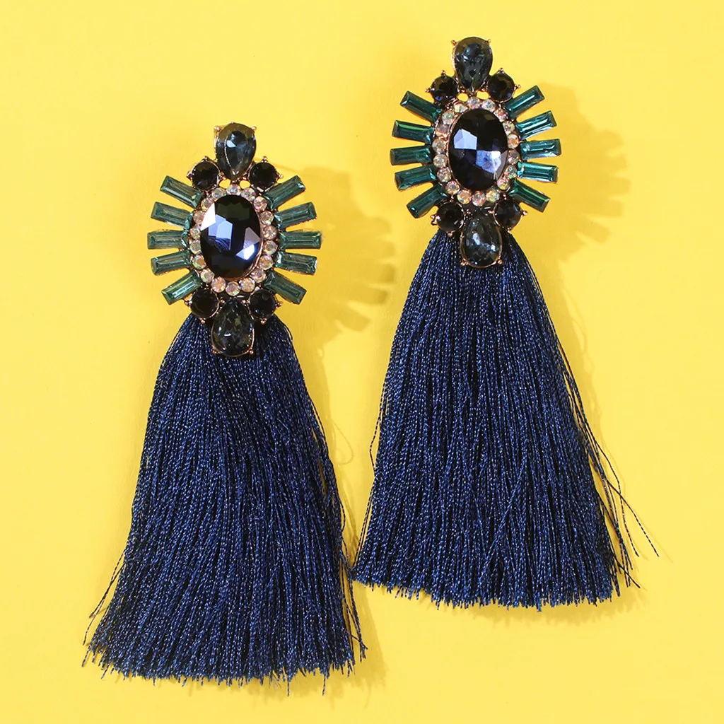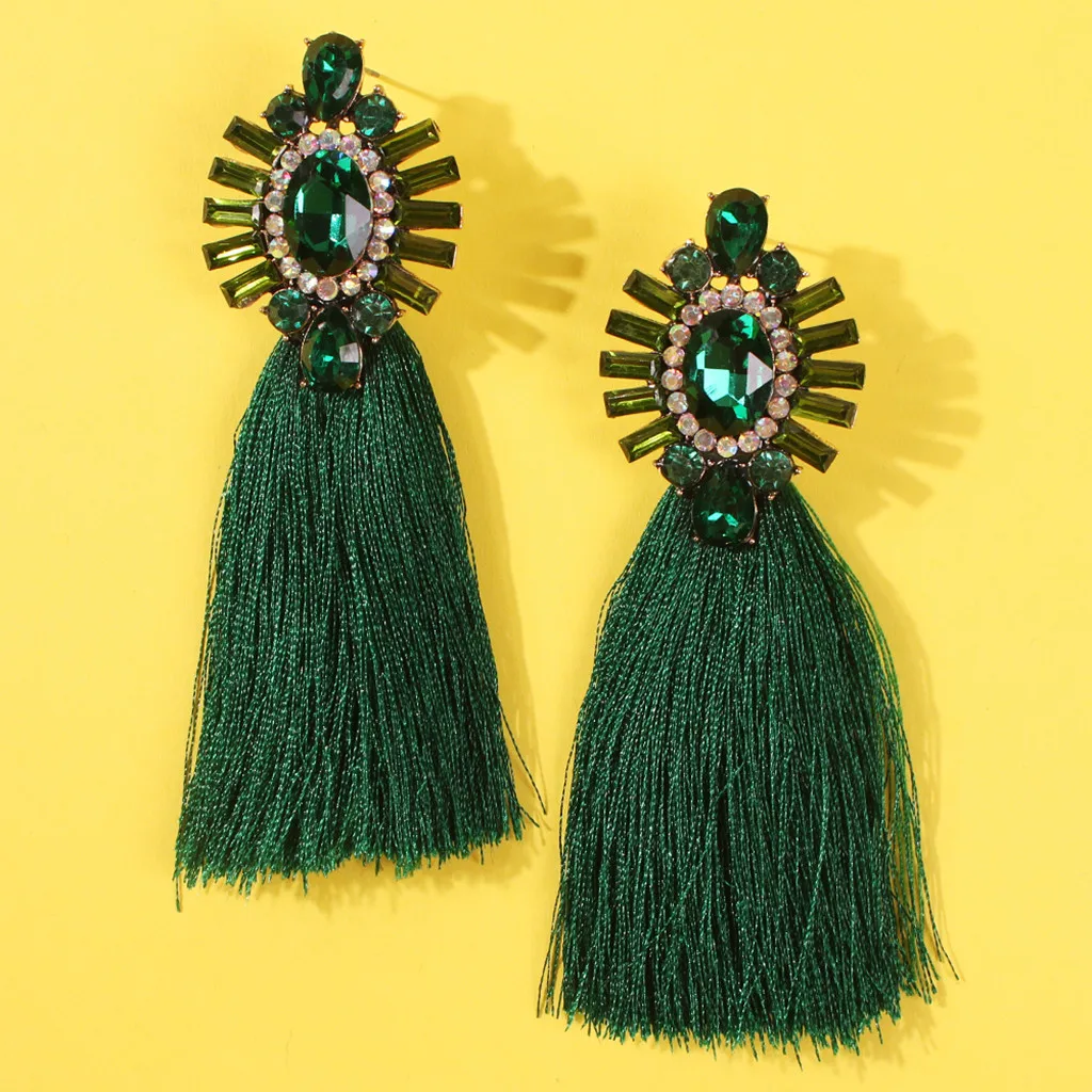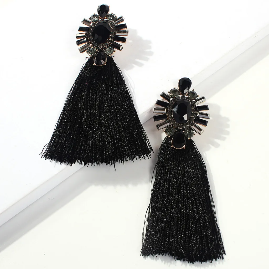 Bohemian Rattan Handmade Tassel Geometric Round Earrings Ladies Jewelry