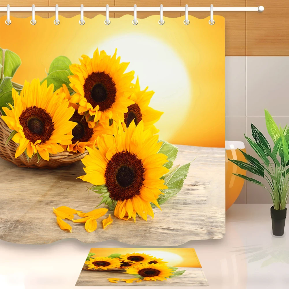 Подсолнух печатных водонепроницаемый полиэстер утолщаются занавески для душа Ванная комната Декор