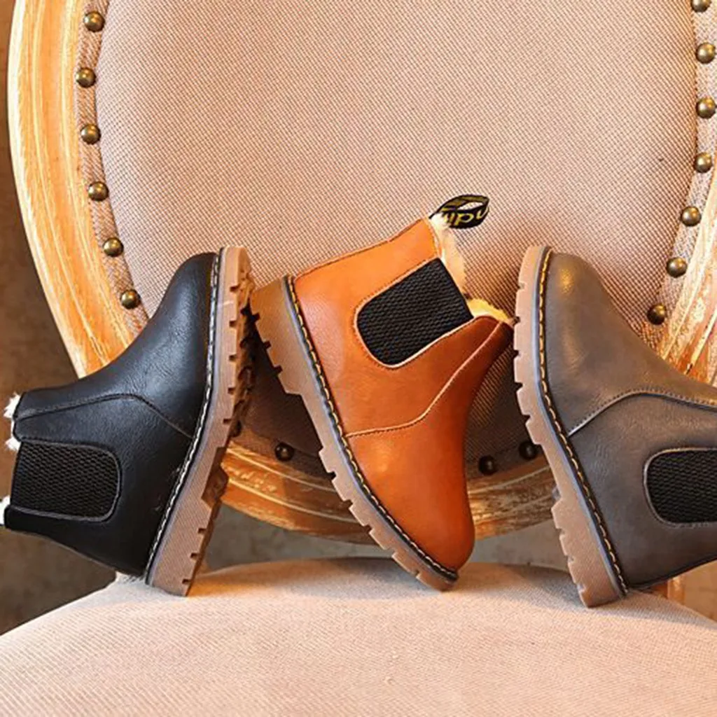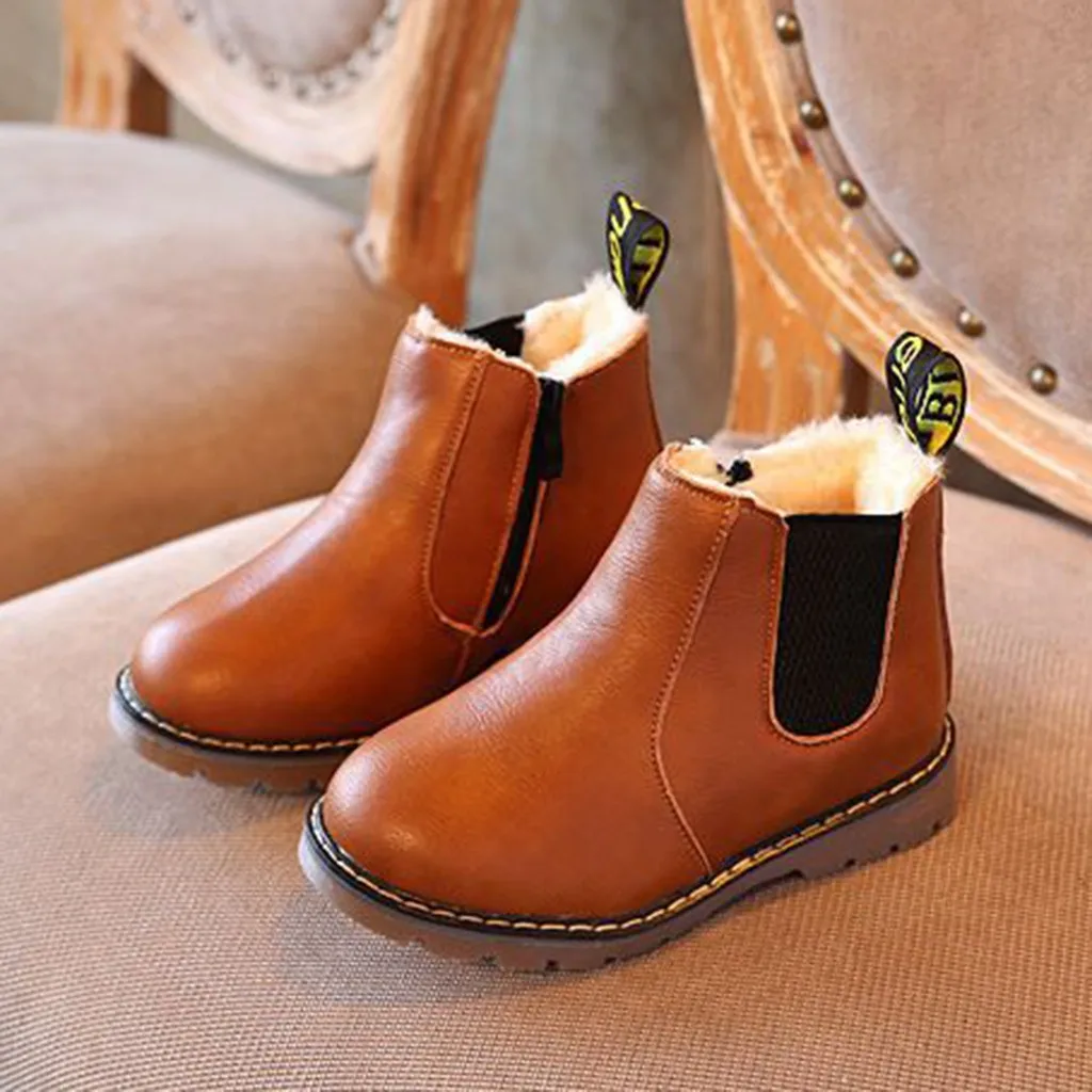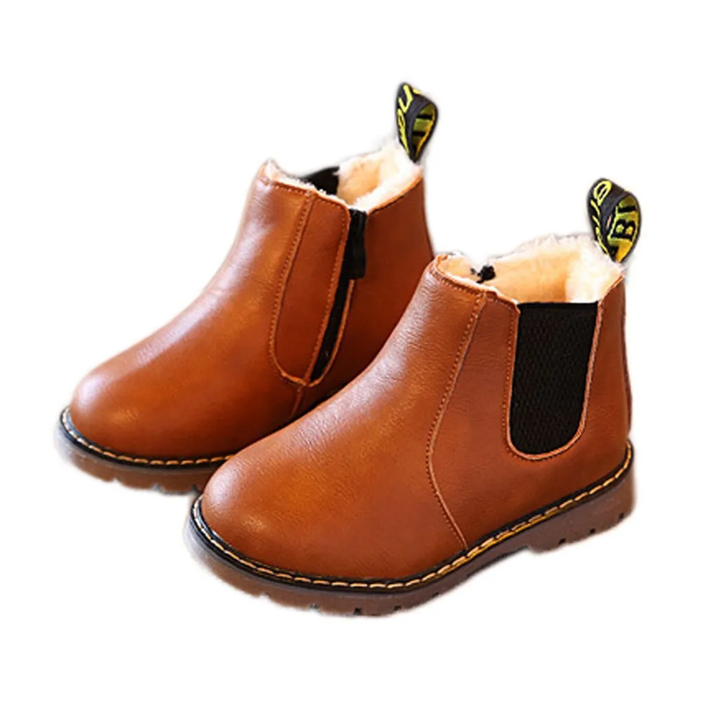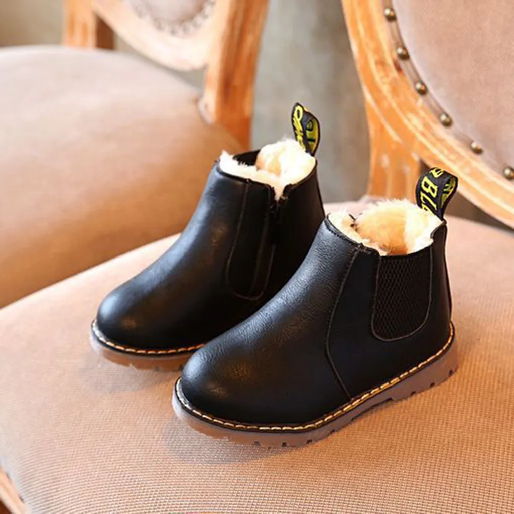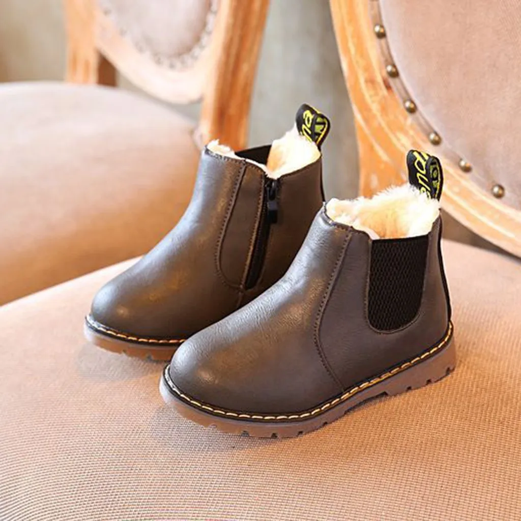 Детские Зимние Теплые ботильоны для мальчиков и девочек; Детская обувь на молнии
