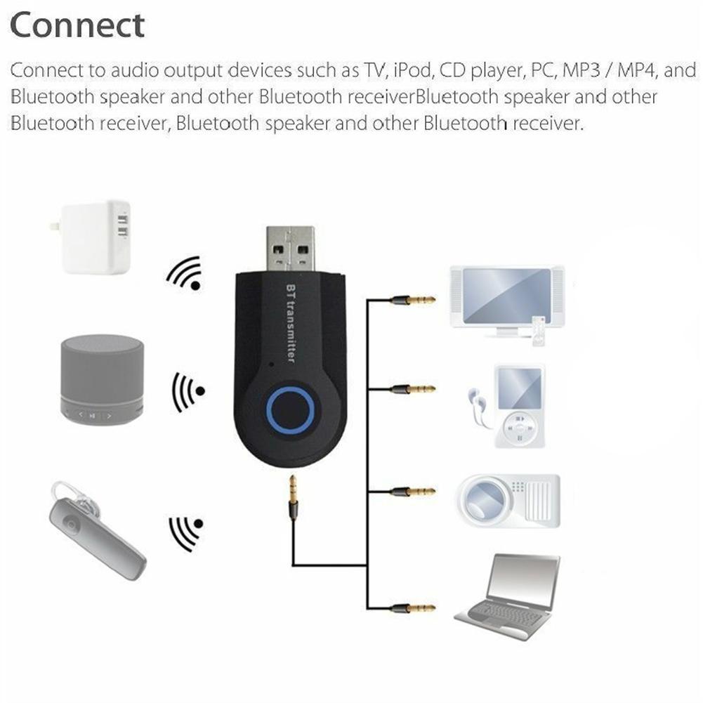 После подключения к их через 3,5 мм аудио кабель или кабель RCA, он может передавать аудио файлы из них с поддержкой Bluetooth приемник устройств (например, гарнитура, Динамик, Bluetooth приемник, И т. д.).