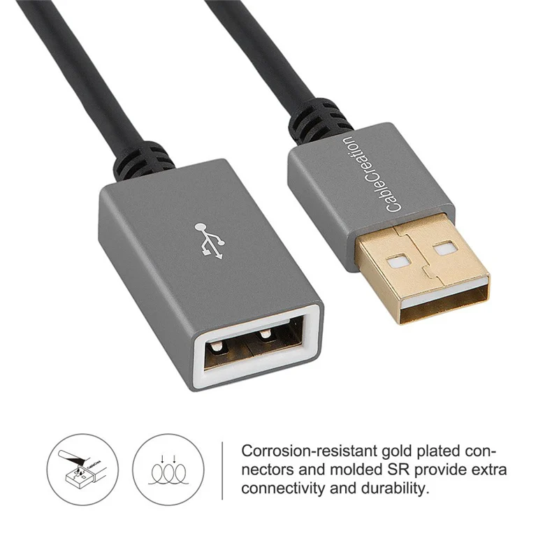 Удлинительный Кабель USB 2,0 расширяет подключение USB к компьютеру или Mac на 1,66фт, для использования с геймпадом, USB флеш-накопителем, жестким диском, кардридером, мышью, клавиатурой, принтером, сканером, камера и другие USB периферийные устройства компьютера USB 2,0 скорость передачи данных 480 Мбит/с, с тестирование скорости 30 МБ/с. передачи скоростью из 1 ТБ жёсткий диск. Идеальное Резервное копирование для защиты оригинального интерфейса USB от повторного подключения и отключения. Сочетание позолоченных разъемов, голеных медных проводников и экранирования из фольги и оплетки обеспечивает превосходную производительность кабеля и дополнительную долговечность. Описание продукта: Технические характеристики Сторона 1: USB 2,0 A позолоченный разъем Сторона 2: USB 2,0 A Женский позолоченный разъем Кабель Длина: 0,5 метр примерно 1,66 FT Цвет: ПВХ черный