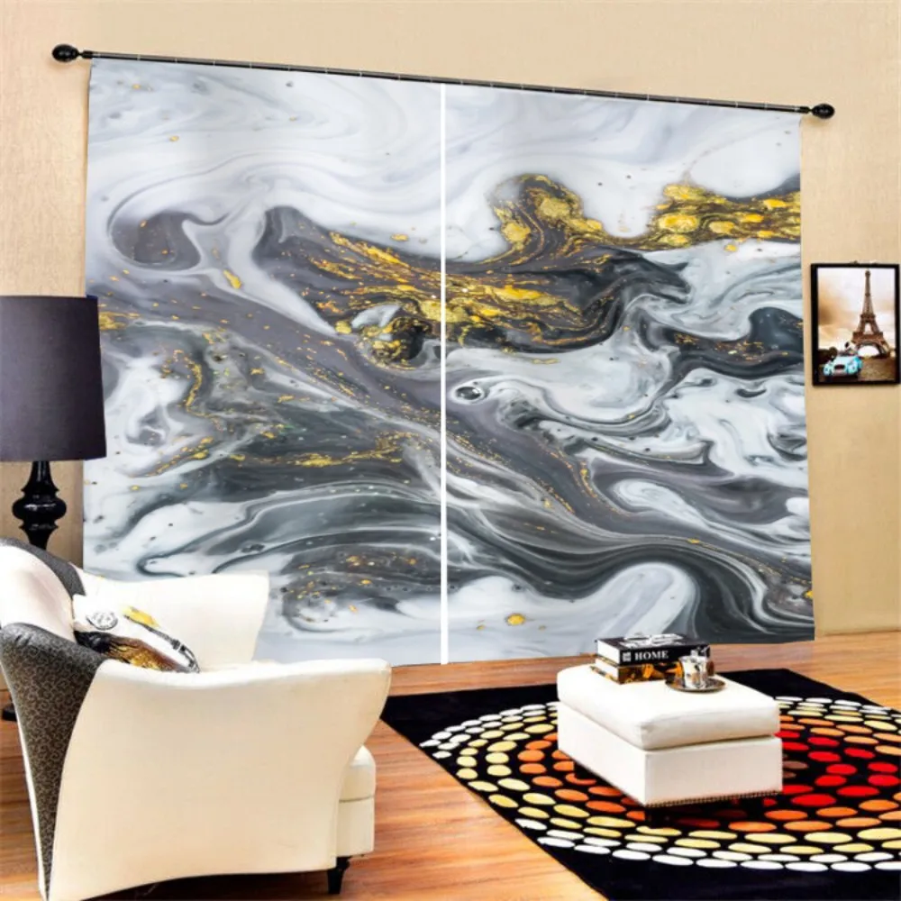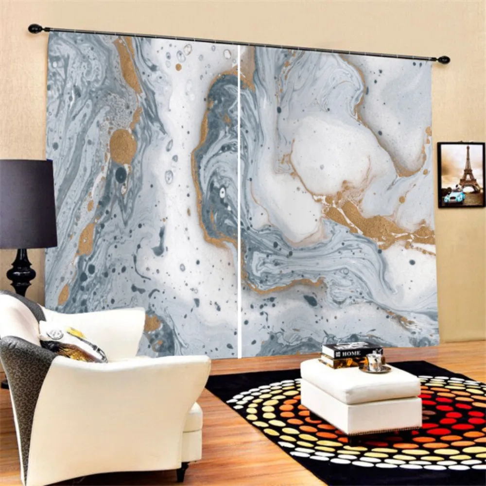 3D печати окна шторы натуральный мраморный узор полиэстер затемненные занавески для спальни, кухни, занавески для гостиной, крючки, станок и 2 панелей