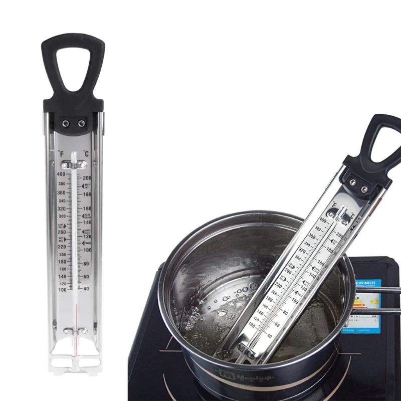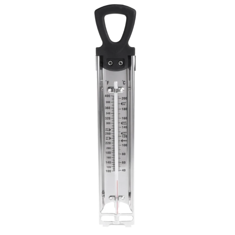 Термометр для приготовления пищи из нержавеющей стали идеально подходит для измерения точных точек джемов, сахаров и температуры глубокой жарки. Читает от 40 до 200 с четко обозначенными точками температуры приготовления.