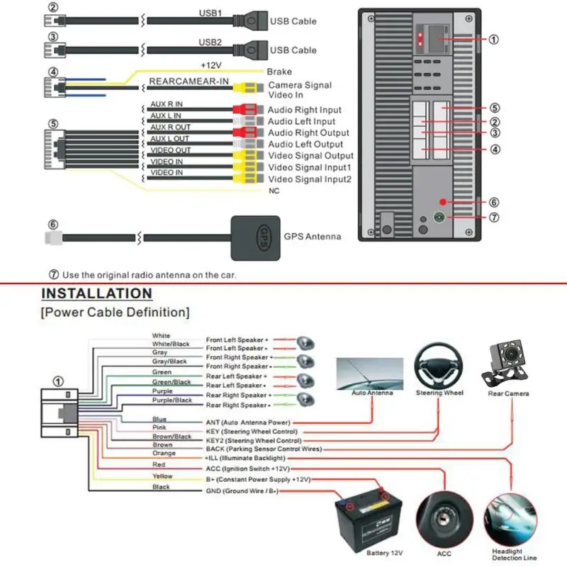 4. При установке машины обязательно Подключите провод правильно. Если установка не работает на машине, Пожалуйста, подключите красный провод и желтый провод к 12 В питания положительного полюса, черный провод к источнику питания отрицательного полюса, попытайтесь узнать, может ли машина работать нормально. Если он может работать нормально, то это может быть вызвано проблемой проводки, вы можете обратиться за нашей помощью, чтобы вы могли использовать продукт лучше.