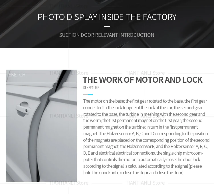 Низкий уровень шума От прикосновения к замку транспортного средства до замка автомобильной двери, весь процесс тихий, и шум очень низкий. Удобный С этого момента Попрощайтесь с шумом закрытия автомобильной двери. Высокая-конец Всасывающая дверь-это очень дорогой автомобиль, который раньше использовался.